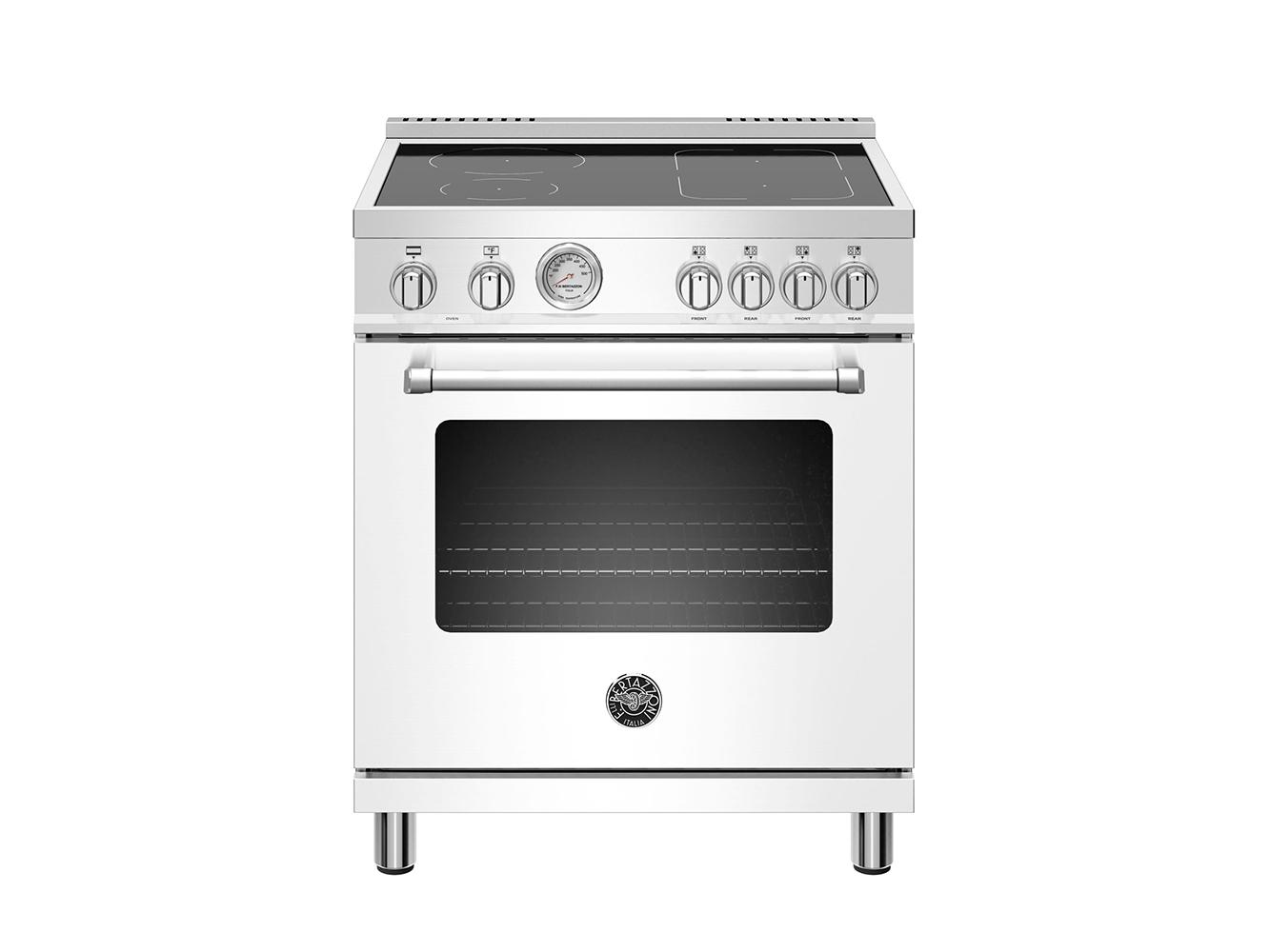 Bertazzoni Master Series ranges are percision-engineered for performance and design that will bring a professional touch to your kitchen. The induction cooktop uses electromagnetic energy to turn the pots themselves into the actual heat sources. It's fast and safe. The oven features an electric broiler with an extra-wide European convection fan for balanced air-flow. This alows ensures even heat distribution for single and multi-level roasting and baking. Included with the oven are soft-motion hinges for easy on handed operation. The door features edge-to-edge tempered glass windows to minimize heat loss. The range features large round metal knobs and unique handles that match perfectly with the many other Master Series products offered by Bertazzoni.