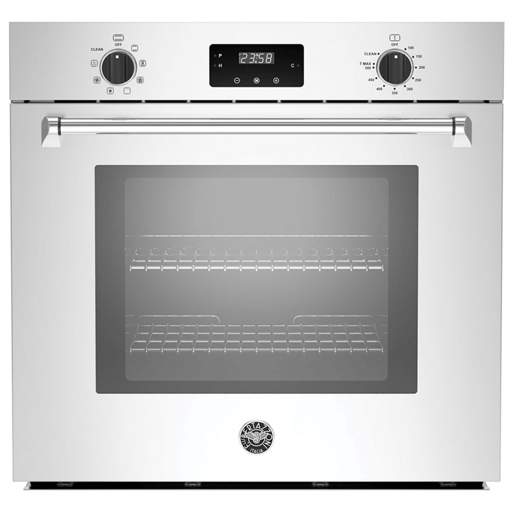 With technology designed to help you cook any dish to perfection, the Bertazzoni dual diagonal convection fans offer best-in-class even heat distribution throughout the extra-large 4.1 cu.ft oven cavity. Evenly bake large batches of cookies using all 7 shelf positions. The full-width 8-pass broiler sears steaks so they are crisp on the outside and juicy inside. Or use it to broil delicate fish fillets to perfection. And when you ve finished cooking, the no-fingerprint stainless steel is easy to clean.