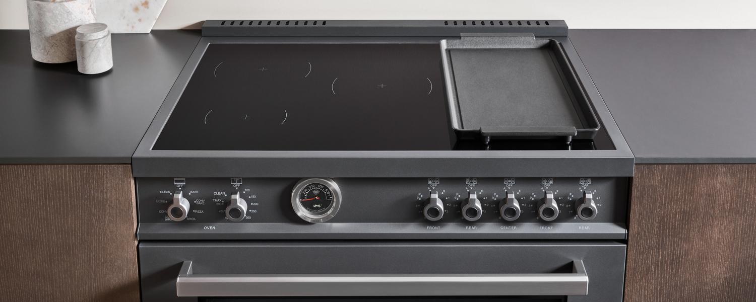 36 inch Induction Range, 5 Heating Zones and Cast Iron Griddle, Electric Self-Clean Oven Carbonio