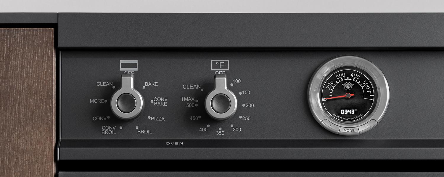 The 5.7 cubic feet self-cleaning oven is the largest in its class, with dual convection fan for balanced airflow and even temperature baking and roasting on 7 shelf levels. The elegant digital temperature gauge monitors the actual temperature in the oven and has integrated controls in the bezel for the food temperature probe. The extra wide electric broiler with optional convection is ideal for grilling and searing at high heat. The oven includes convenient features such as smooth telescopic glides for the oven shelves and soft-close doors. The edge-to-edge interior oven glass door maximizes interior volume and can be wiped clean without effort.