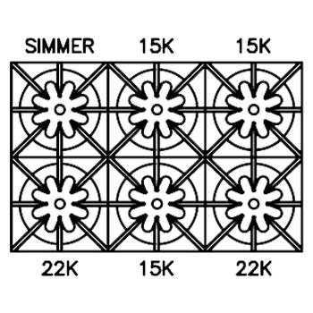 Burner Configurations: RNB Series range burners can be tailored to suit your own cooking preferences. For example, move the simmer burner from back to front or to the right. On some models, choose to add additional 22,000 BTU burners for additional power. The possibilities are endless!