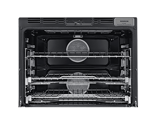 The 30" Single Wall Oven includes the Dual Four-Part Pure Convection for reduced cooking time and superior consistency with zero flavor transfer. A Wi-Fi enabled 7" LCD touch control panel and LED illuminated knobs provides convenience and the ability to use SmartThings integration for communication between appliances as well as remote monitoring and operation.