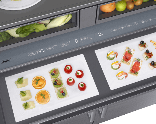 Blends perfectly with surrounding cabinetry thanks to counter height vertical bottom freezer doors. The FreshZone+ compartment is the most flexible way to make more freezer or refrigerator space whenever you need it. With revolutionary innovations like seamless 3D Lighting, stunning stainless steel-wrapped interiors and Dual Icemakers with Whisky Ball Ice, Dacor brings beauty and performance to life like never before.