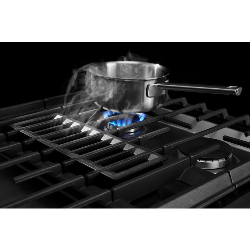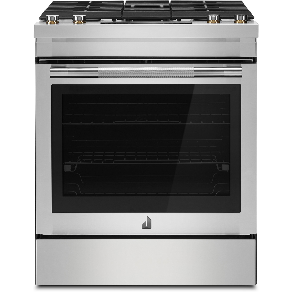 Revel in the power and flexibility of a JennAir dual-fuel downdraft slide-in range. Cook multiple dishes on multiple racks in the 6.2 cu. ft. oven cavity, stir-fry over a burner with an output of up to 17,000 BTUs, then utilize a downdraft ventilation system to help draw odors away.