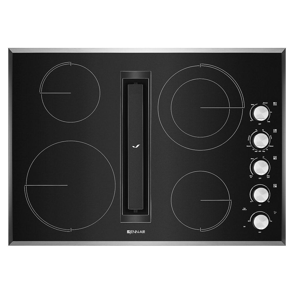 This Jenn-Air luxury electric radiant downdraft cooktop offers a sleek cooking surface with four radiant elements, which offer responsive performance. It also features the impressive JX3 downdraft ventilation system, which quickly and efficiently clears the air without a hood.