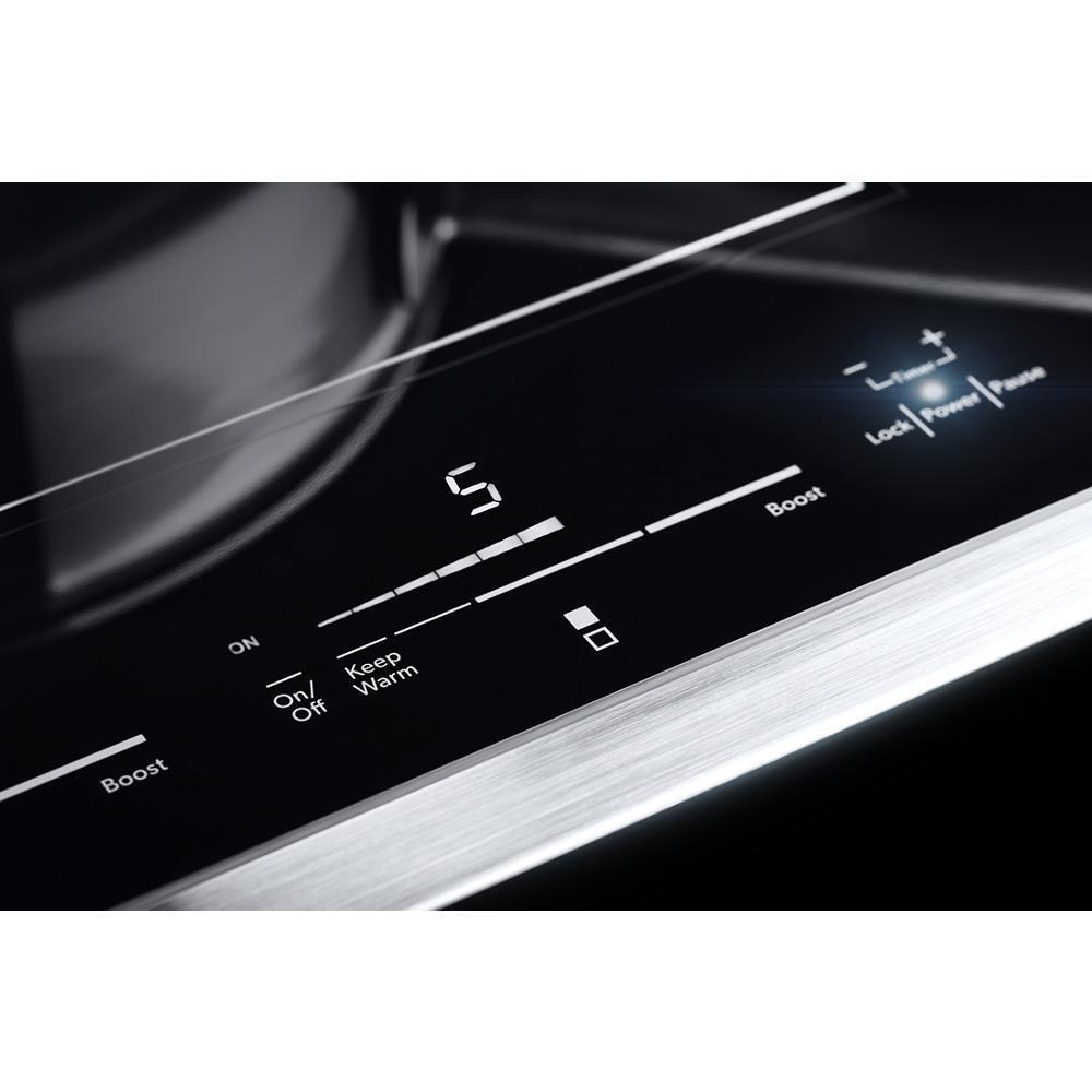 This induction cooktop offers the cooking power of gas and the cleanability of electric with flexible elements that allow versatility in cookware placement. The 15-inch module also features glass-touch electronic controls to complement a low-profile design that provides a minimal look or near-flush installation with your countertop.