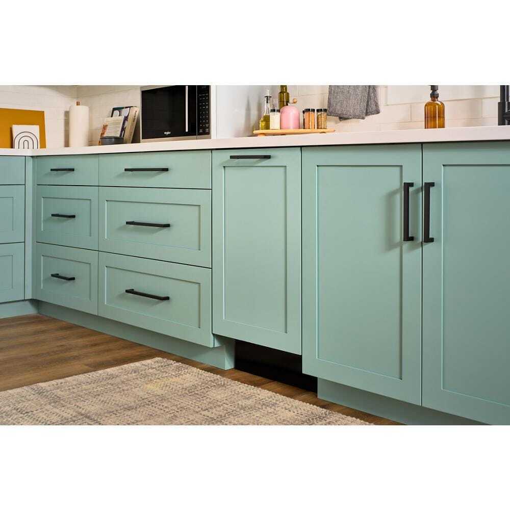 - Allows you to install a custom front panel and handle over the dishwasher door, helping to create a seamless, custom look with kitchen cabinetry.*