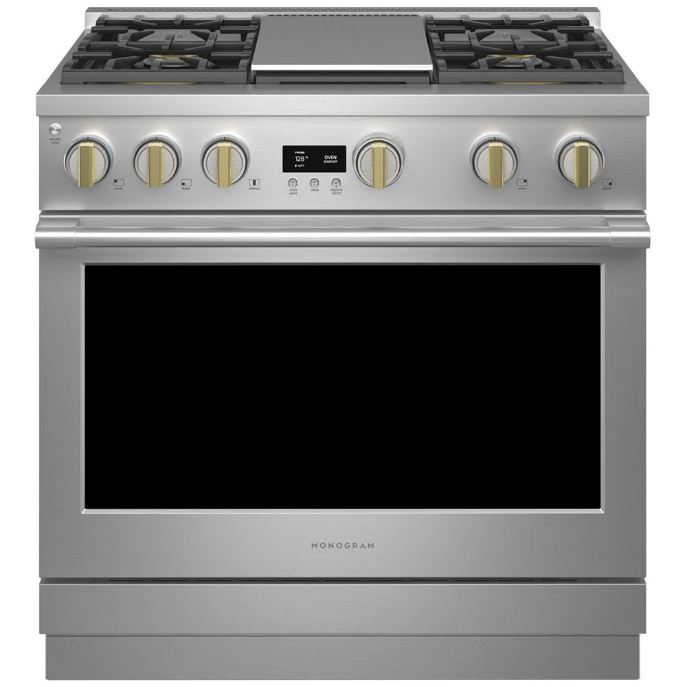 With an unmatched attention to detail, all knobs on the new Monogram Pro ranges and range tops come with solid brass accents