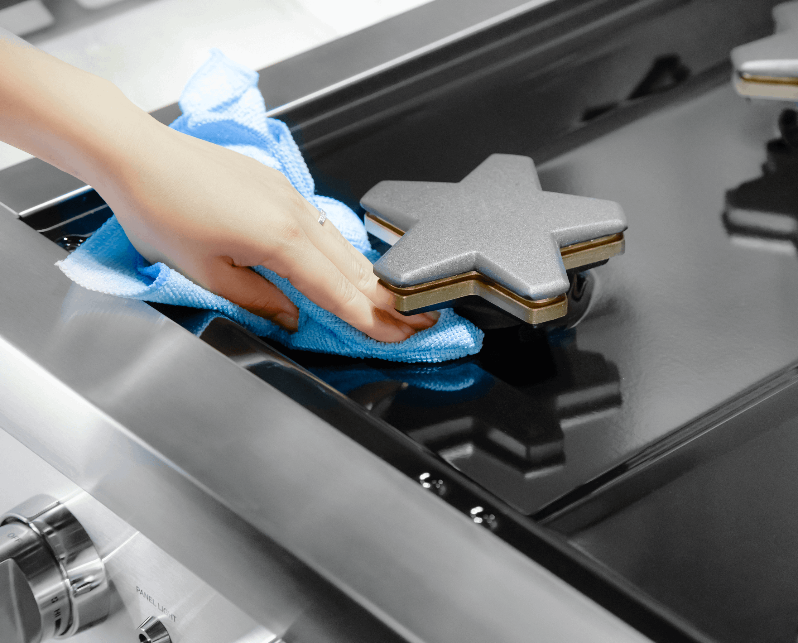 • QuickClean Base allows for easy cleaning - The raised, patented Pedestal Star Burner and porcelain maintop have been crafted for perfect integration and easy cleanup.