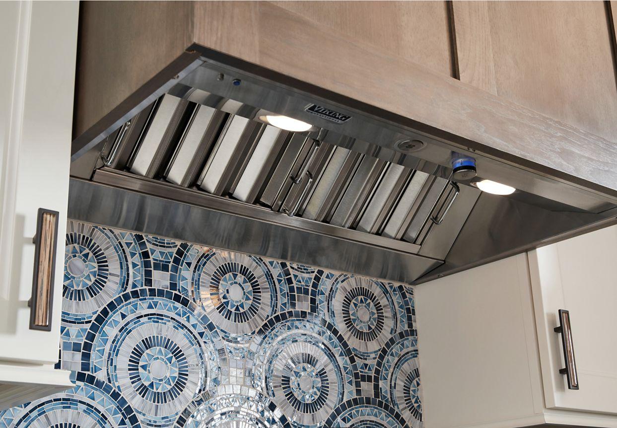 • Low-profile filter system reduces interior hood space, leaving less surface to clean