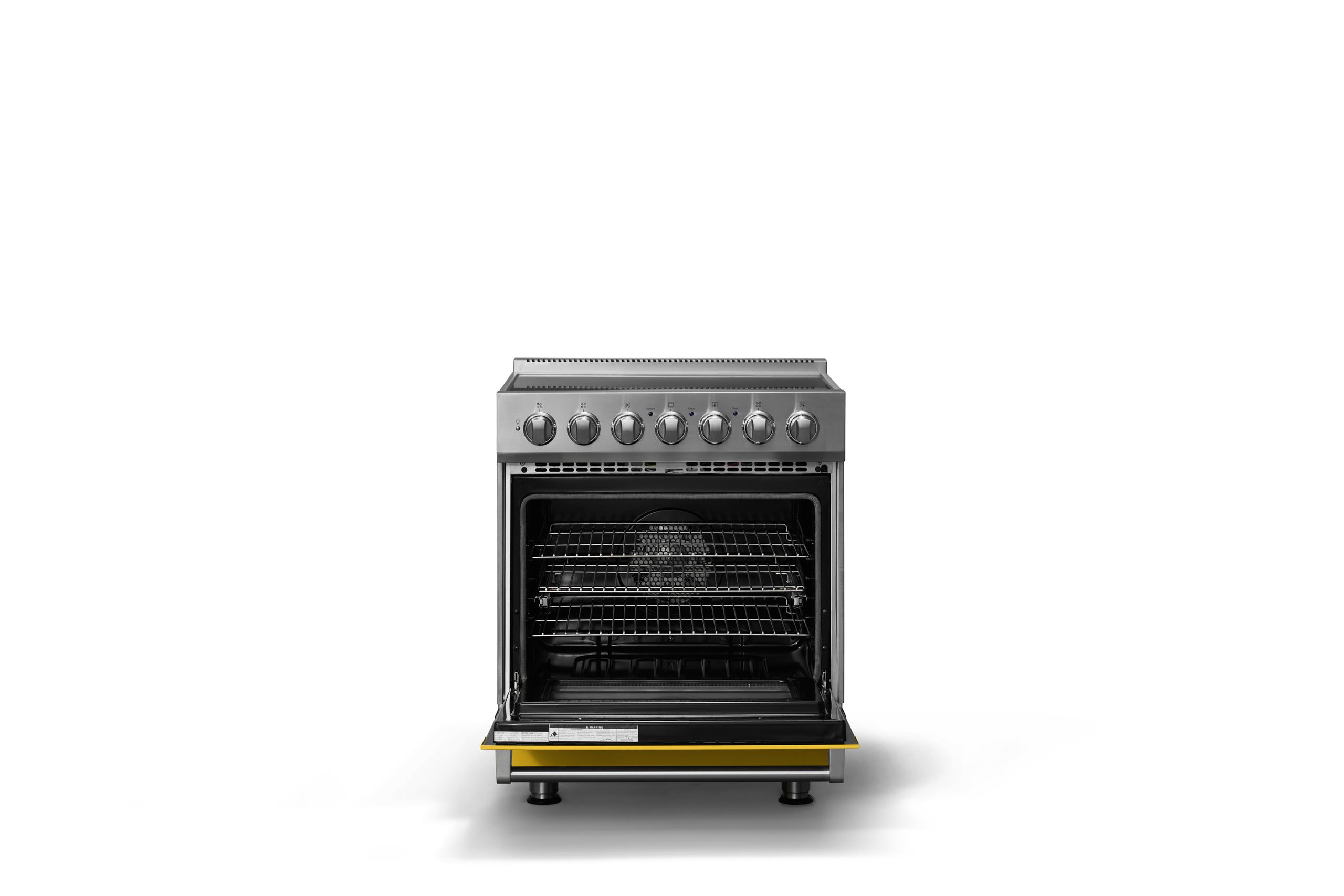 • Exclusive - Large-capacity oven has six porcelain-coated rack supports and comes standard with one heavy-duty TruGlide full extension oven rack and two standard racks