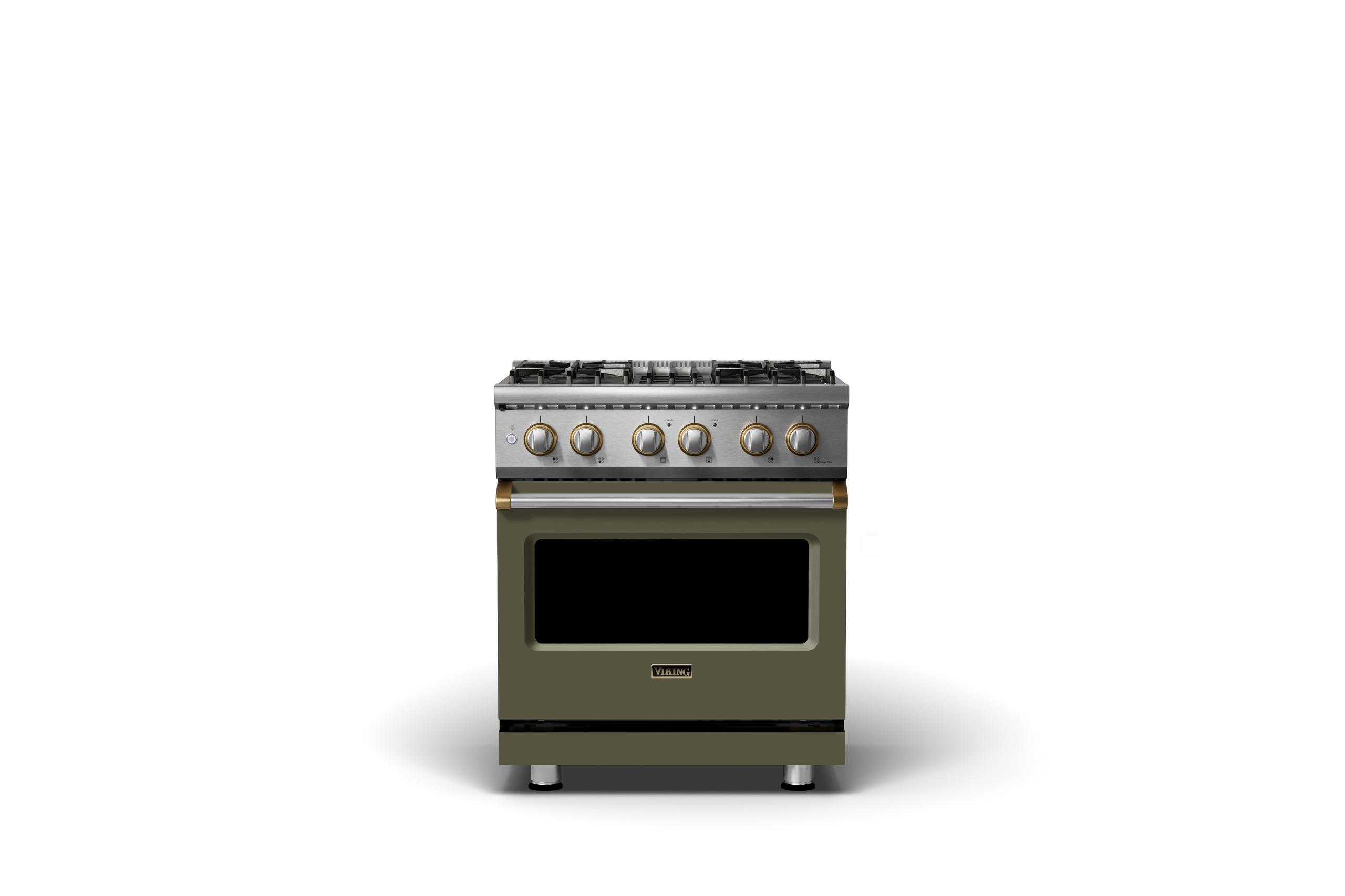 30"W. Dual Fuel Range {Finish=Martini, Trim=Brushed Brass, Fuel=Natural Gas}