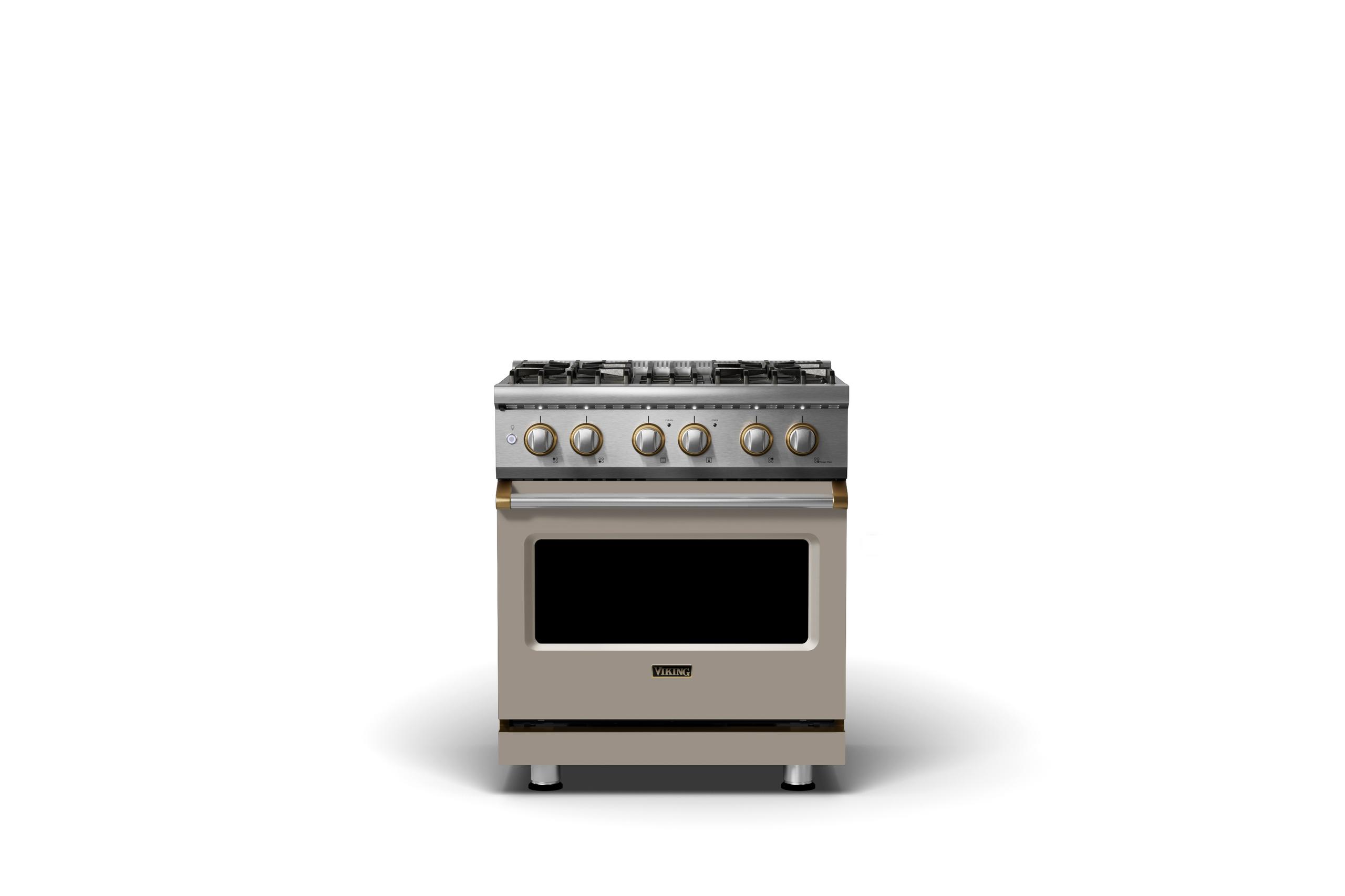 30"W. Dual Fuel Range {Finish=Nantucket, Trim=Brushed Brass, Fuel=Natural Gas}