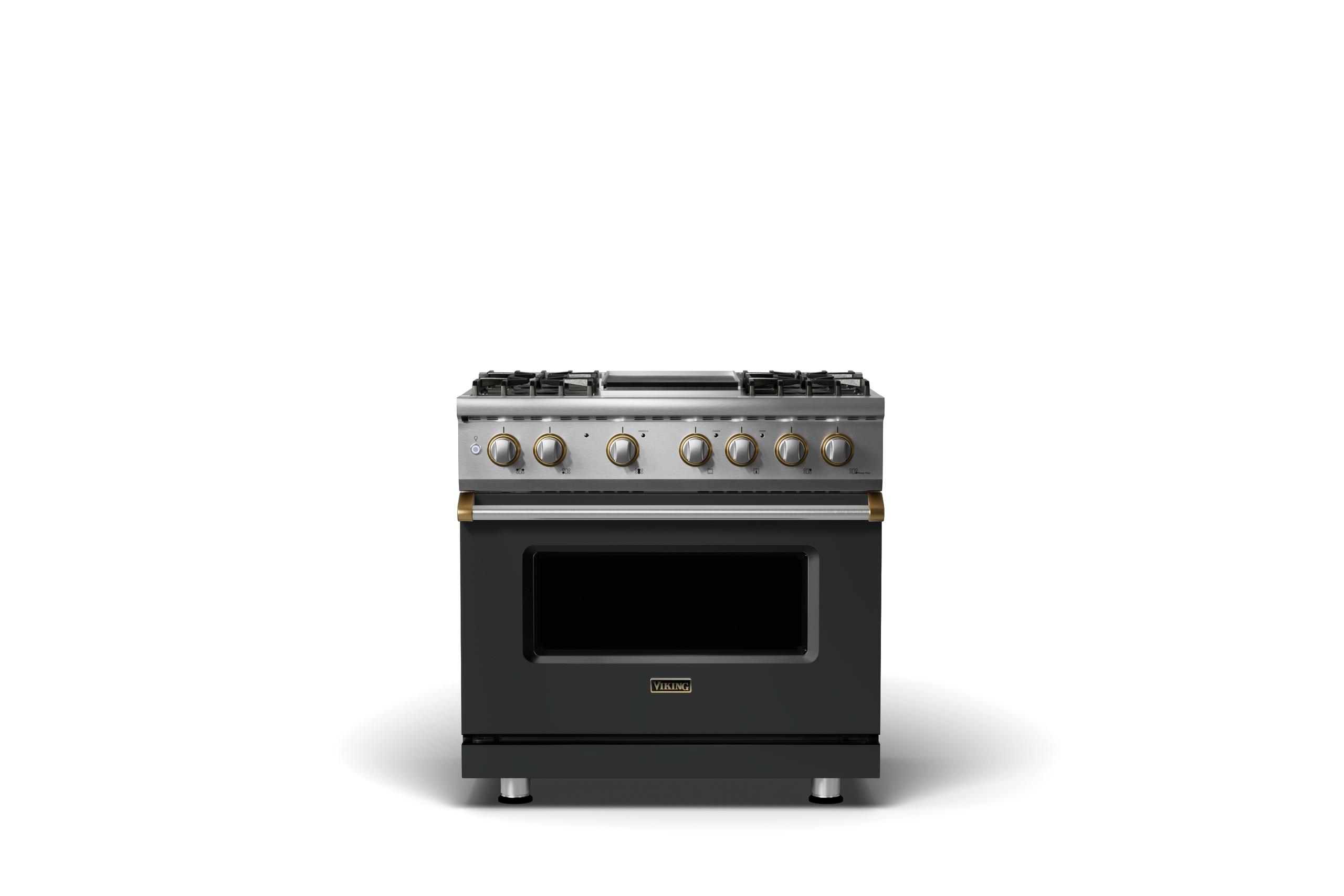 36"W. Dual Fuel Range {Burner=4g, Finish=Antique Bronze, Trim=Brushed Brass, Fuel=Natural Gas}