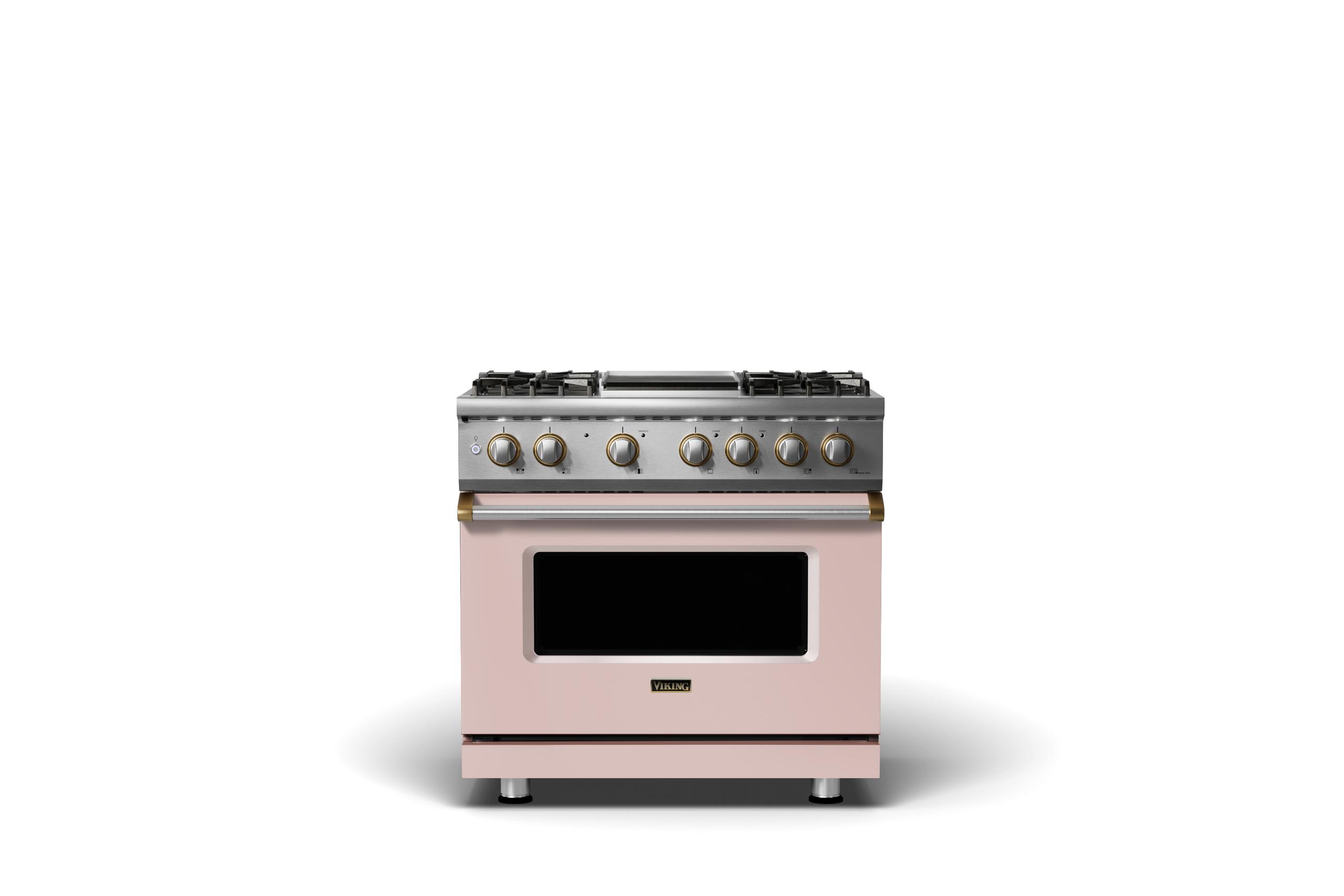 36"W. Dual Fuel Range {Burner=4g, Finish=Blush, Trim=Brushed Brass, Fuel=Natural Gas}