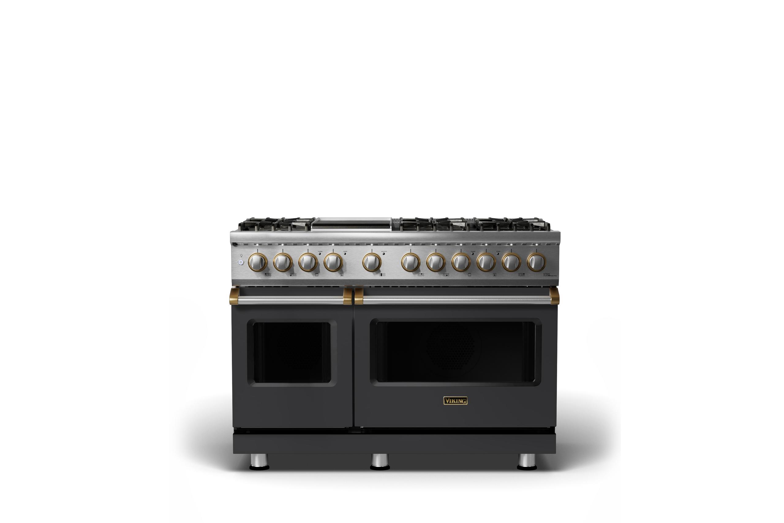 48"W. Dual Fuel Range {Burner=6g, Finish=Cast Black, Trim=Brushed Brass, Fuel=Natural Gas}