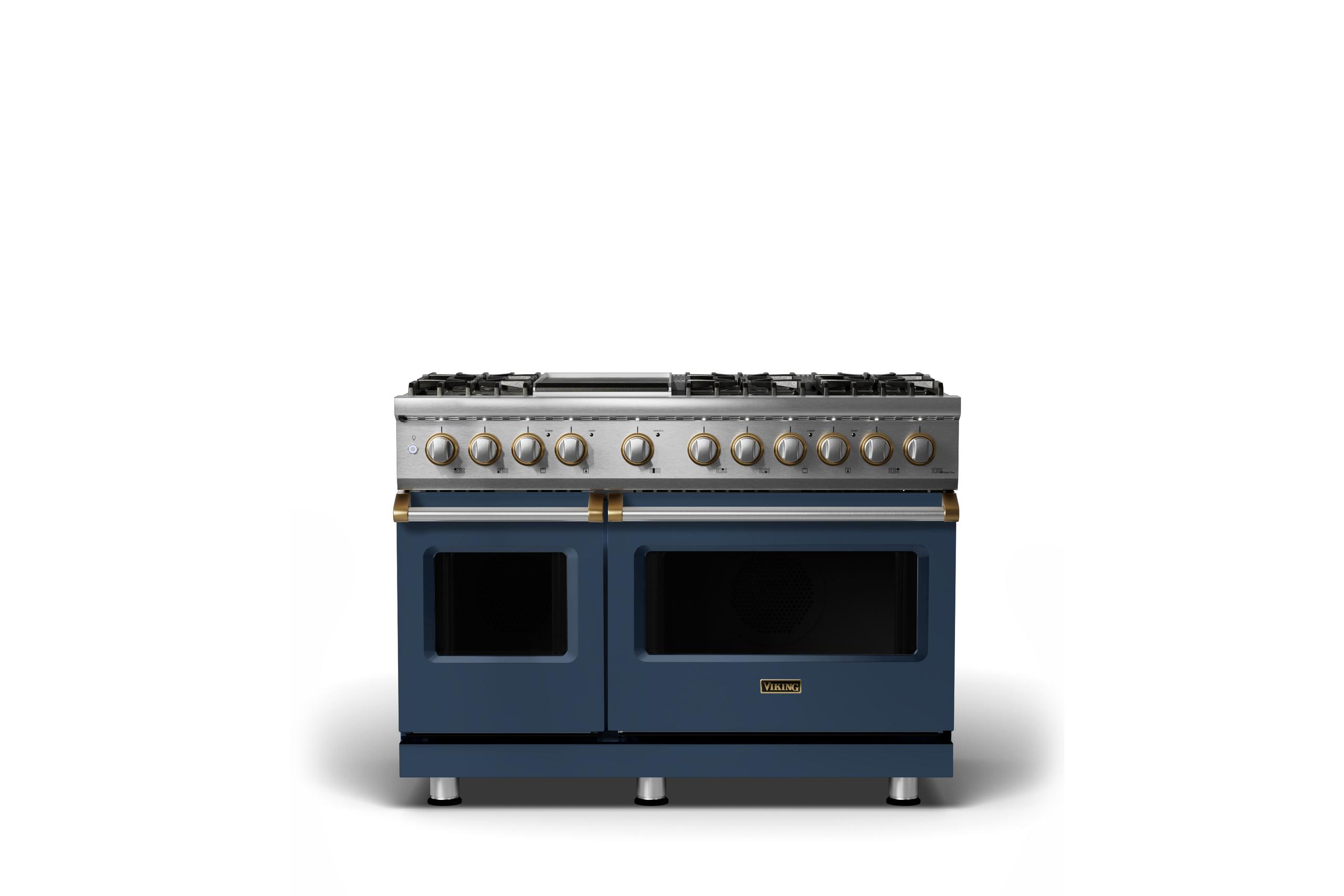 48"W. Dual Fuel Range {Burner=6g, Finish=Slate Blue, Trim=Brushed Brass, Fuel=Propane}