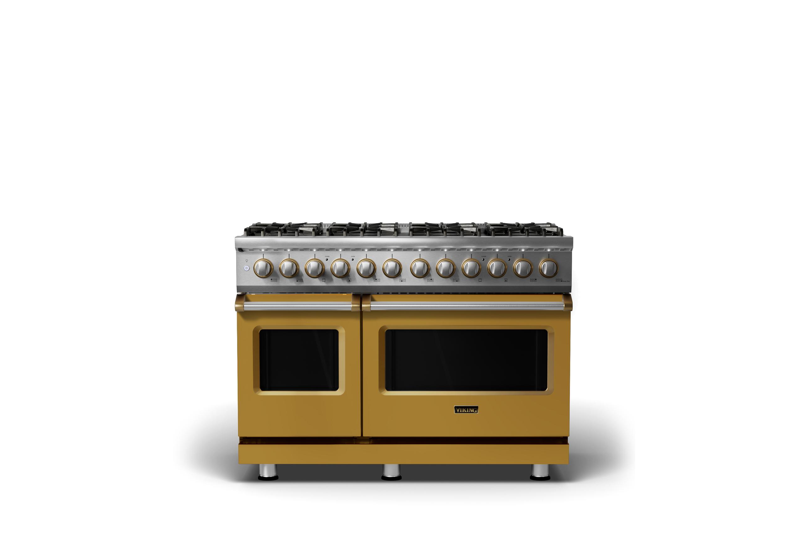48"W. Dual Fuel Range {Burner=8b, Finish=Golden Hour, Trim=Brushed Brass, Fuel=Natural Gas}