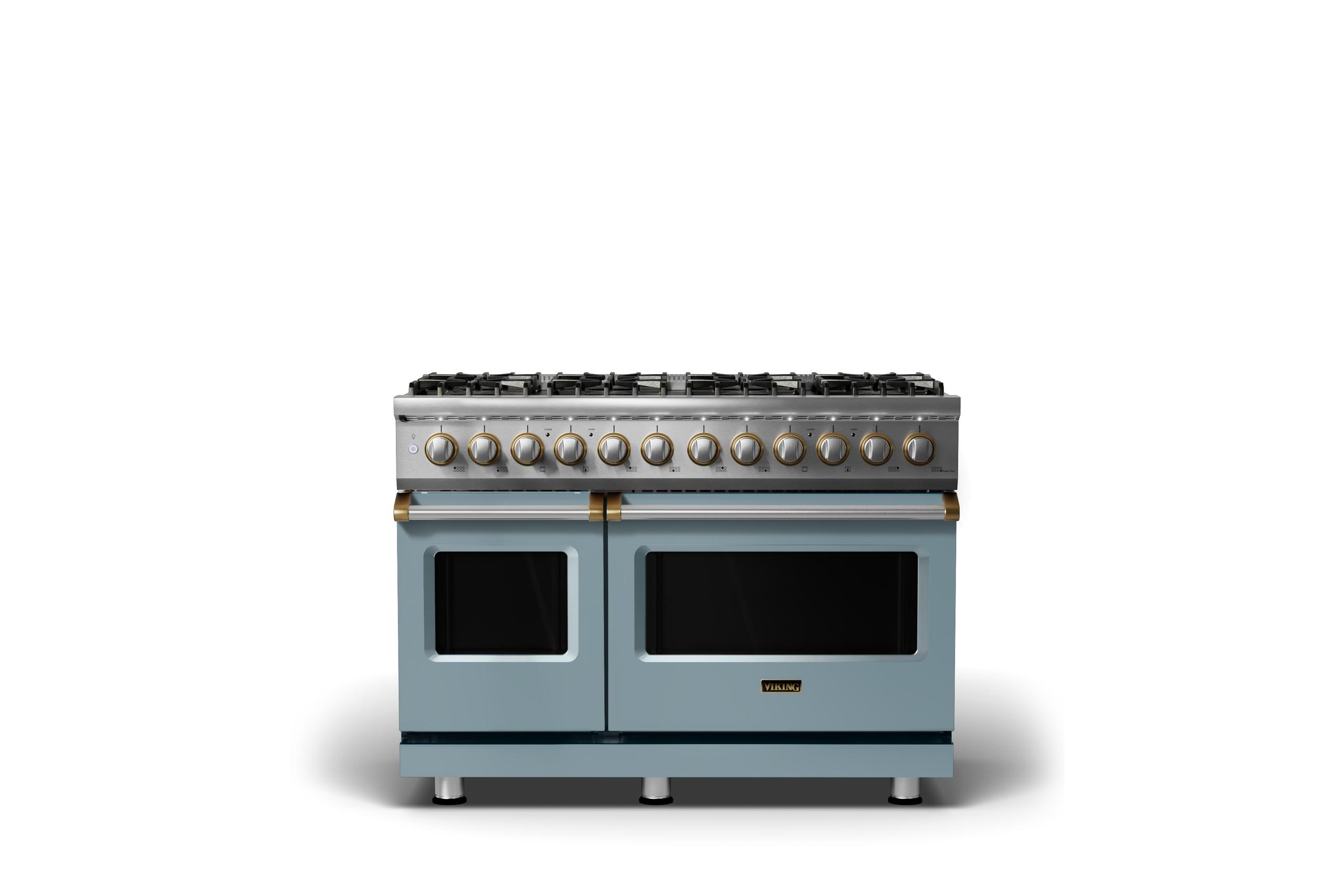 48"W. Dual Fuel Range {Burner=8b, Finish=November Sky, Trim=Brushed Brass, Fuel=Natural Gas}