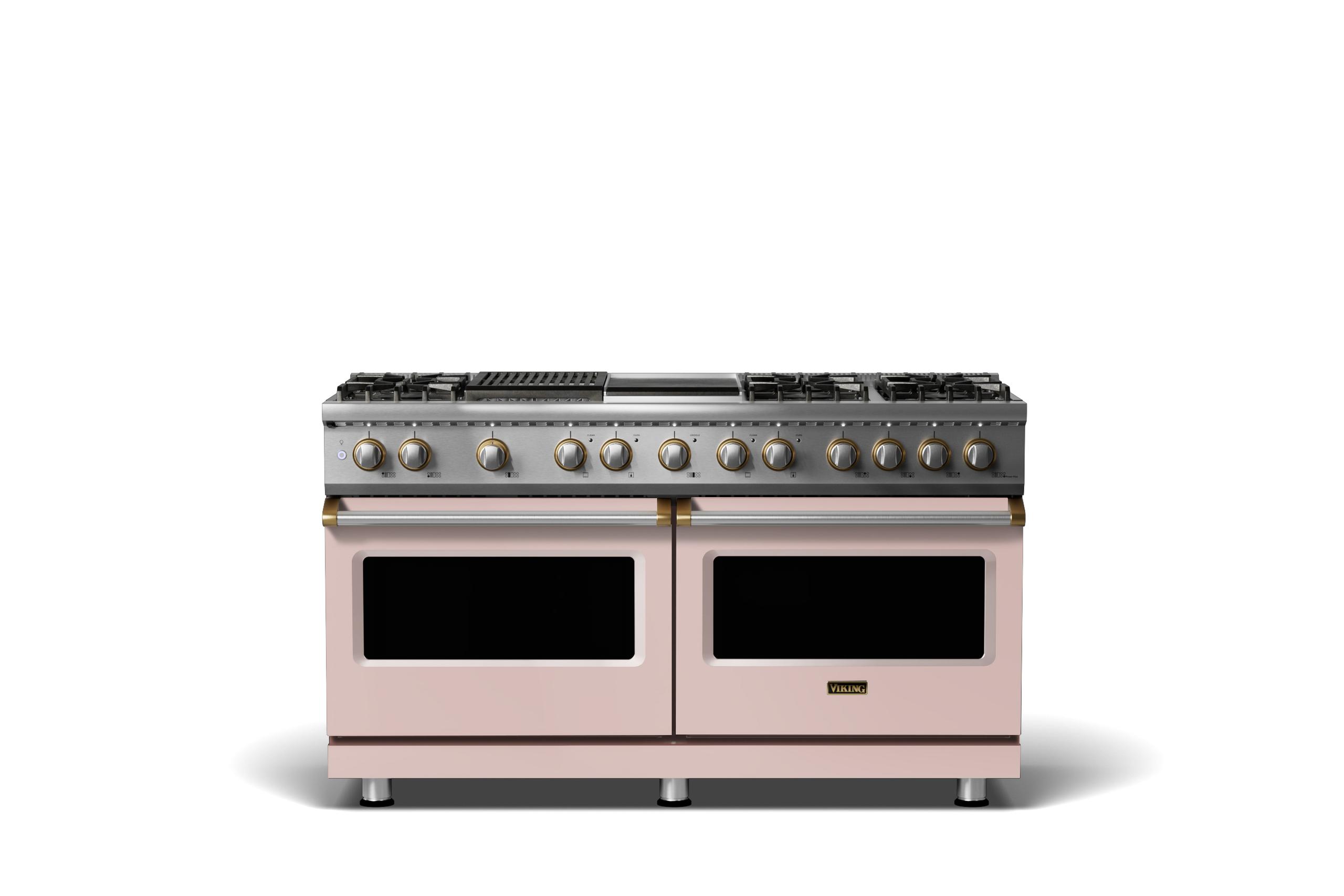60"W.Dual Fuel Range {Finish=Blush, Trim=Brushed Brass, Fuel=Natural Gas}