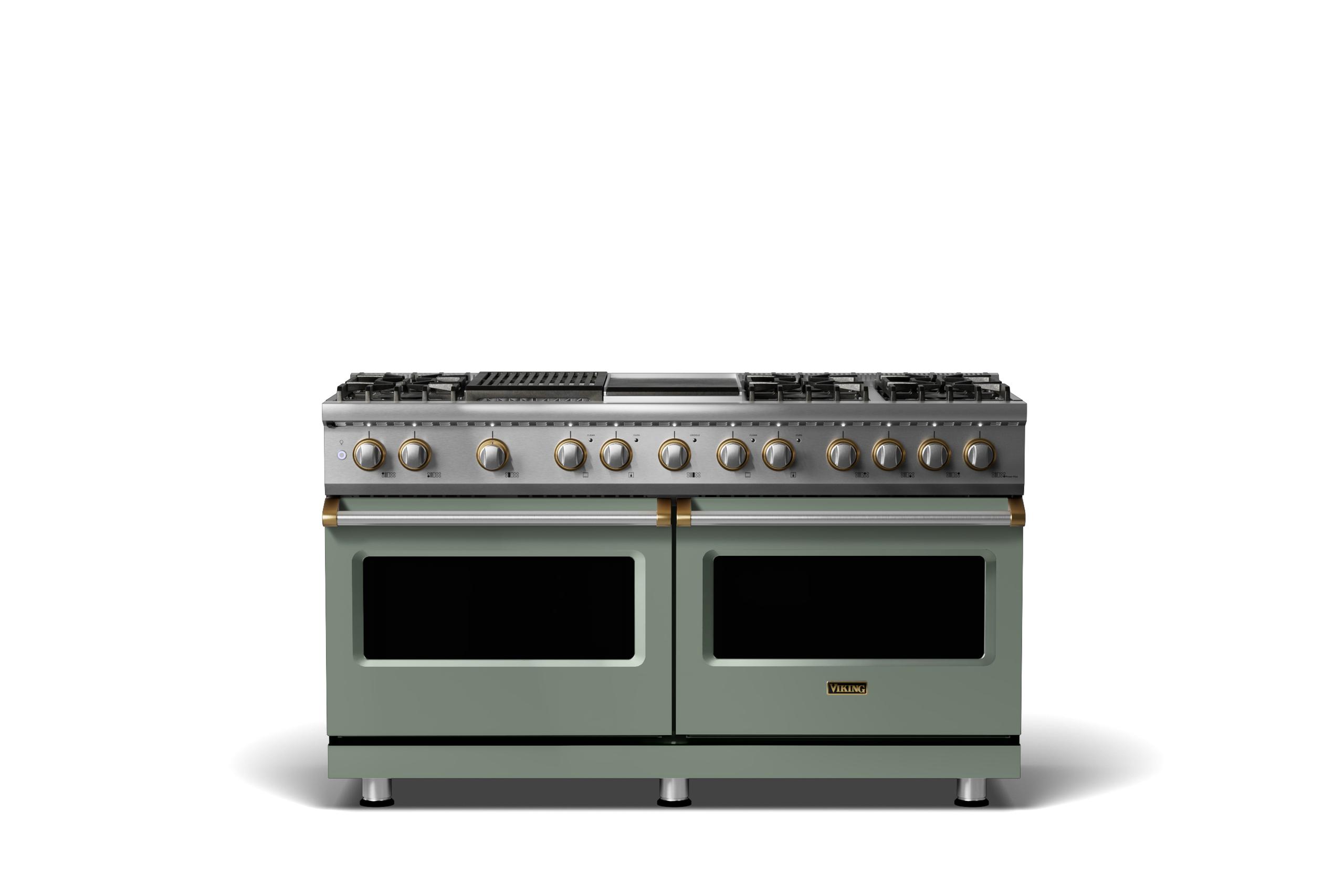 60"W.Dual Fuel Range {Finish=Eucalyptus, Trim=Brushed Brass, Fuel=Natural Gas}
