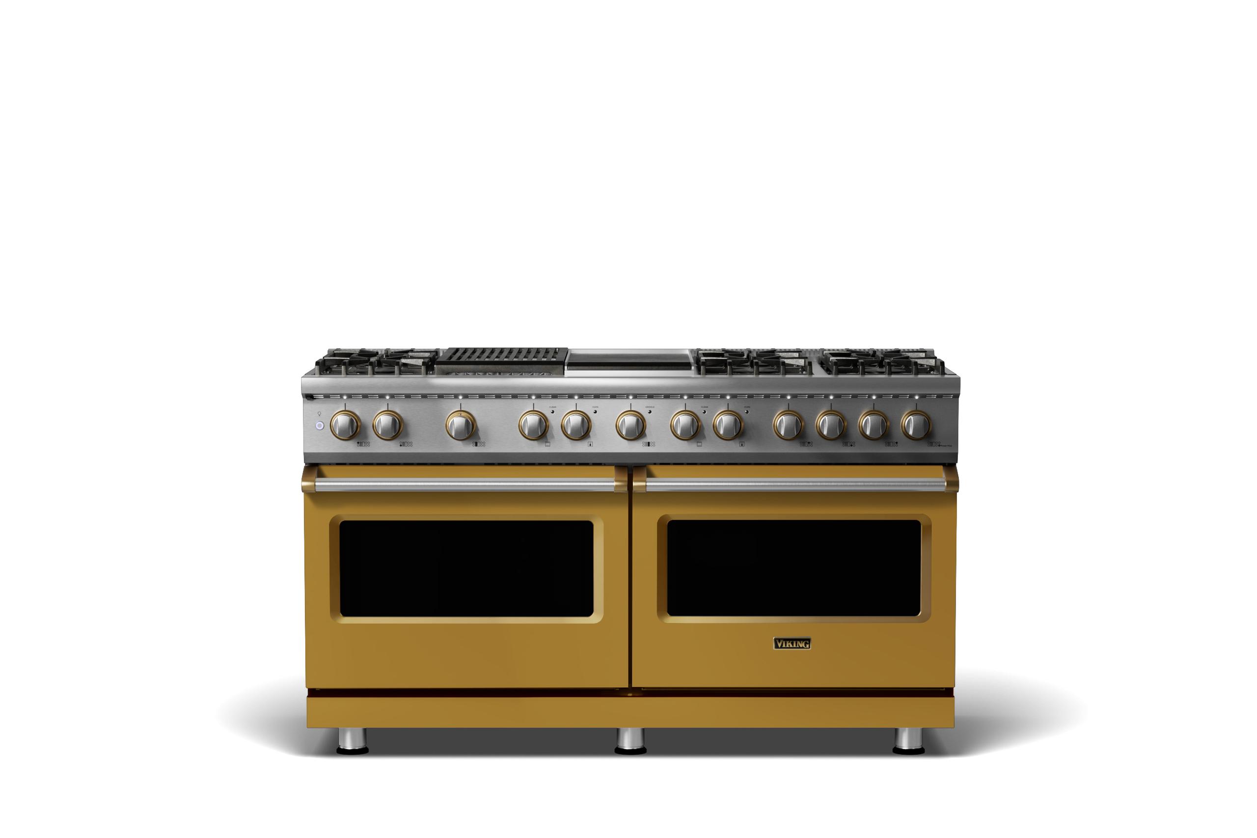 60"W.Dual Fuel Range {Finish=Golden Hour, Trim=Brushed Brass, Fuel=Propane}