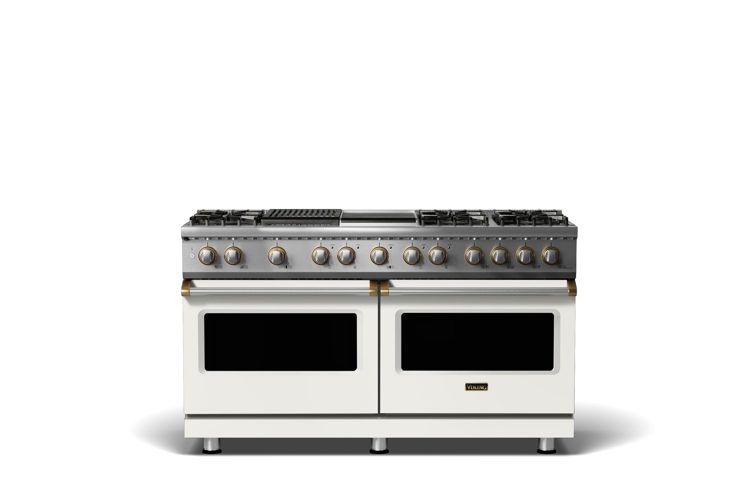 60"W.Dual Fuel Range {Finish=Pure White, Trim=Brushed Brass, Fuel=Natural Gas}