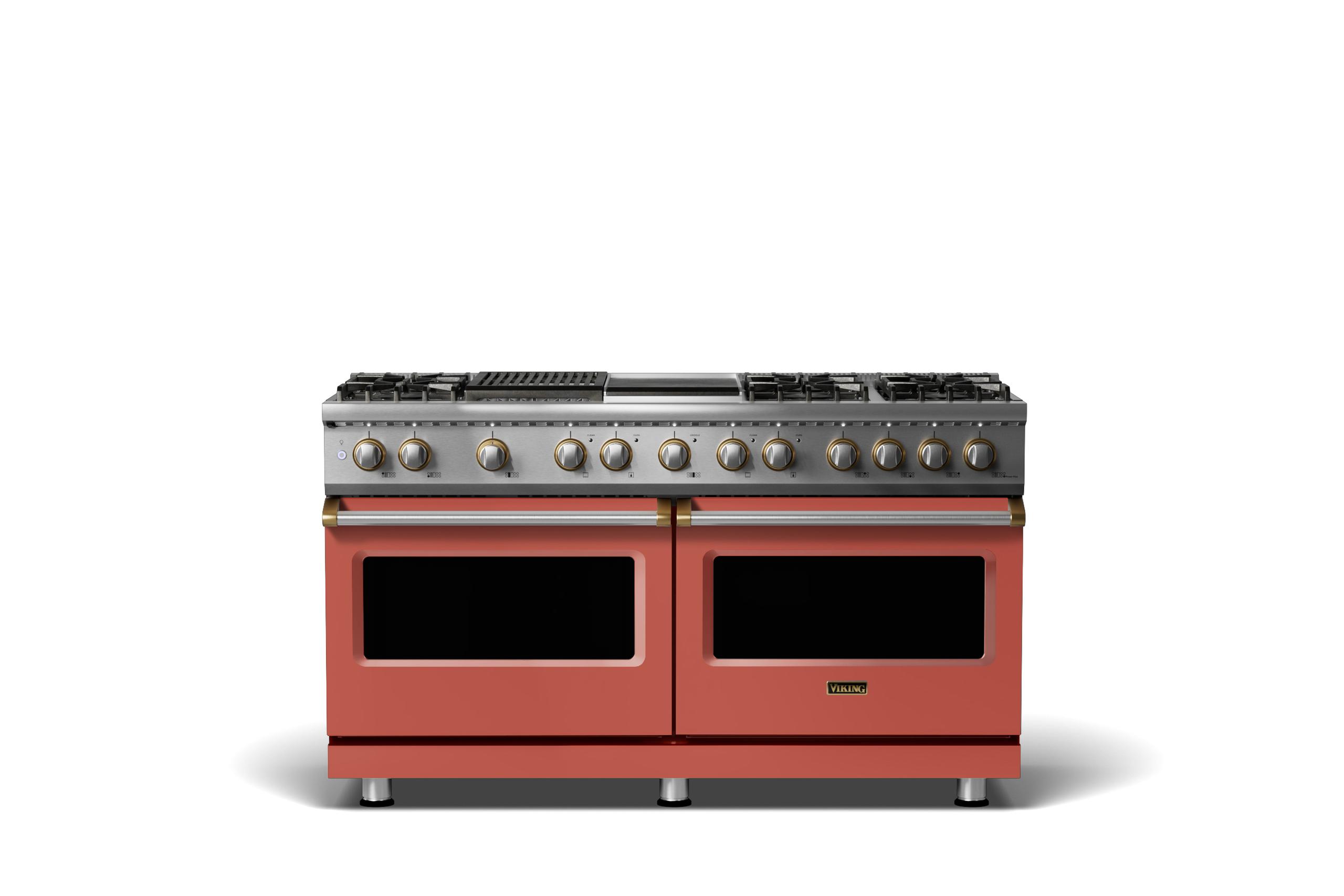 60"W.Dual Fuel Range {Finish=Spiced Cider, Trim=Brushed Brass, Fuel=Propane}