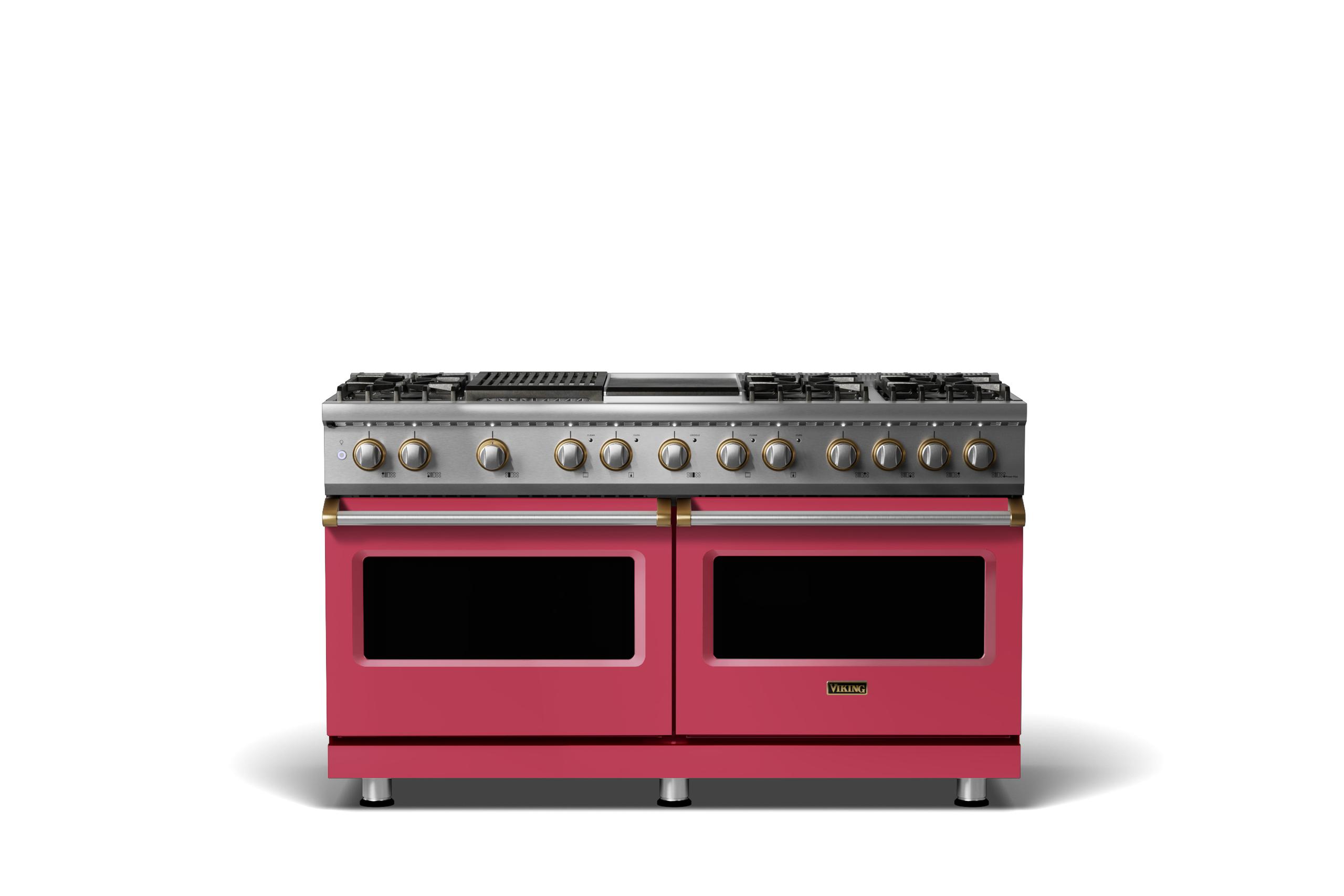 60"W.Dual Fuel Range {Finish=Valentine, Trim=Brushed Brass, Fuel=Natural Gas}
