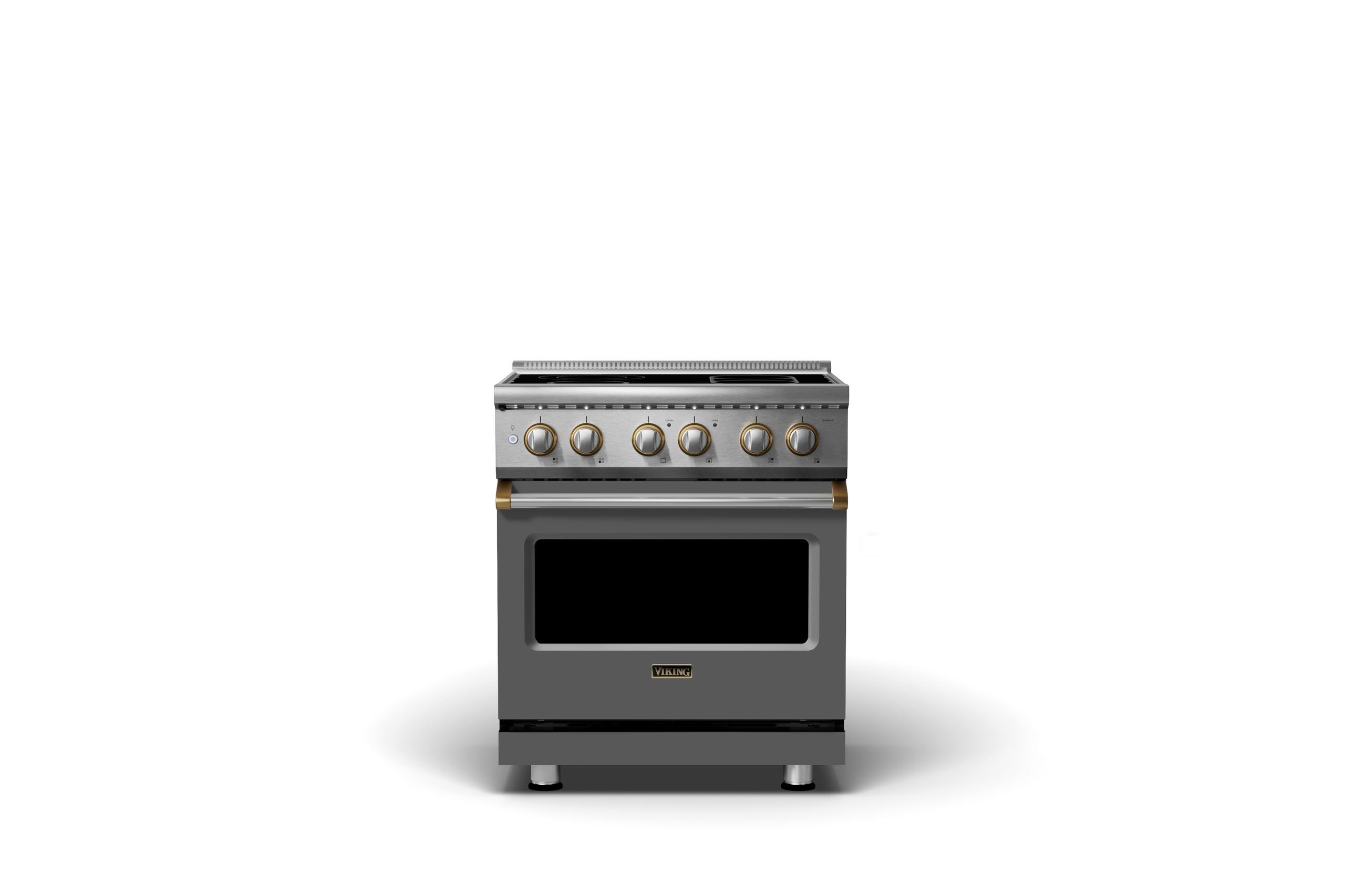 30"W. Electric Range {Finish=Damascus Gray, Trim=Brushed Brass}