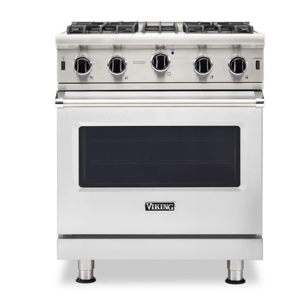 Heavy-duty, porcelainized, cast-iron removable surface grates provide continuous front-to-rear, left-to-right surface for easy movement of large pots