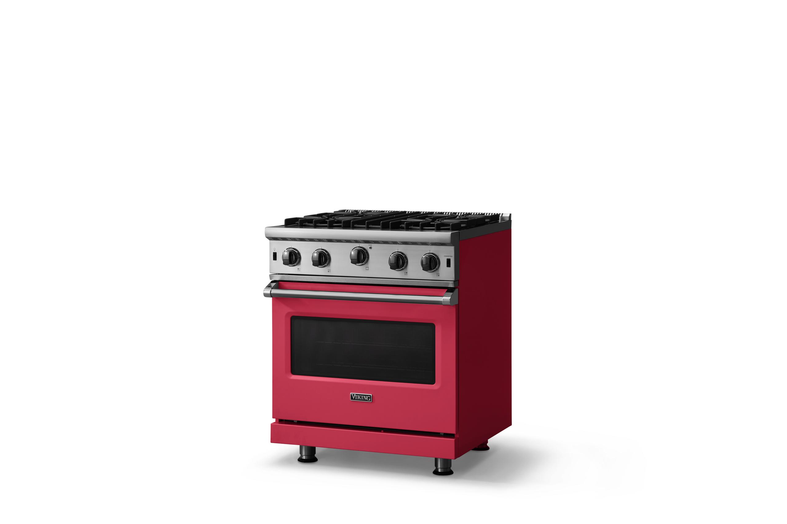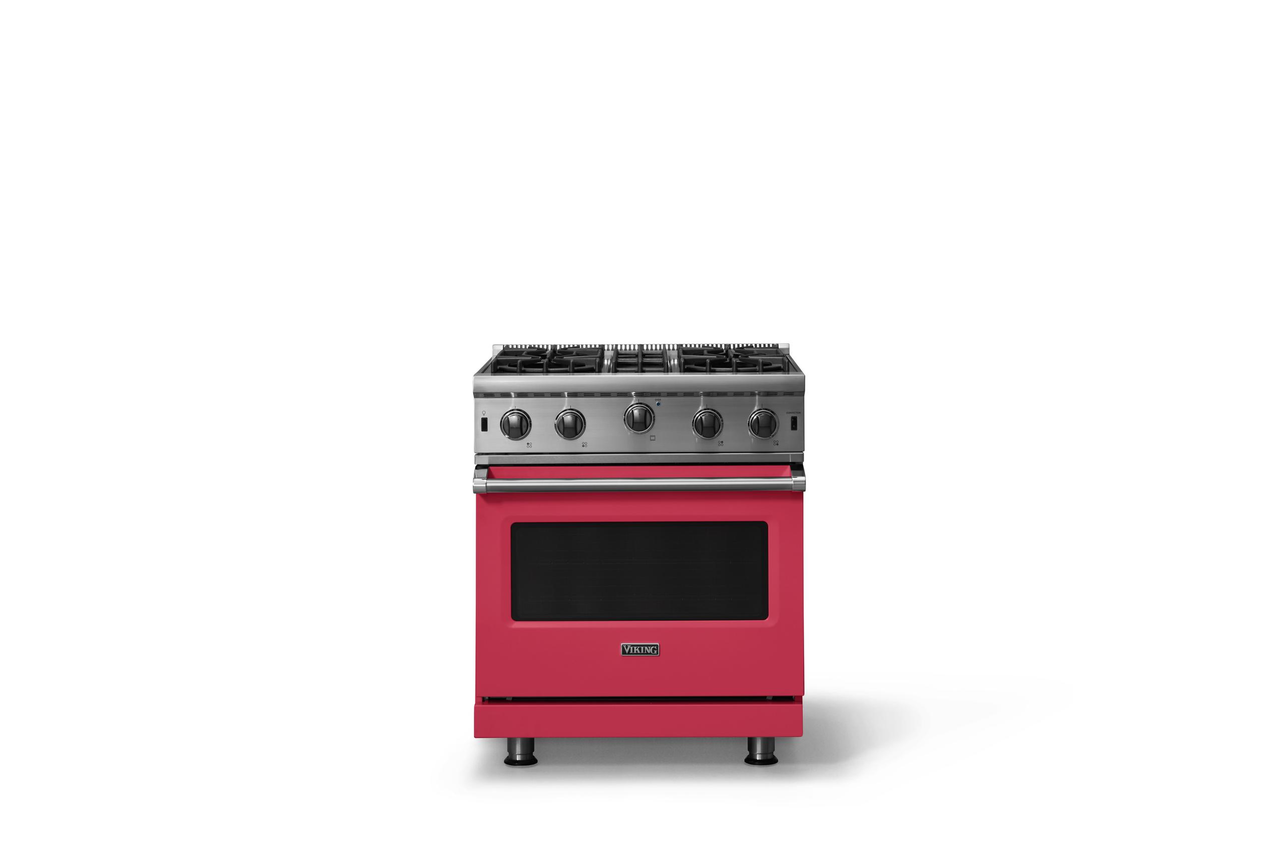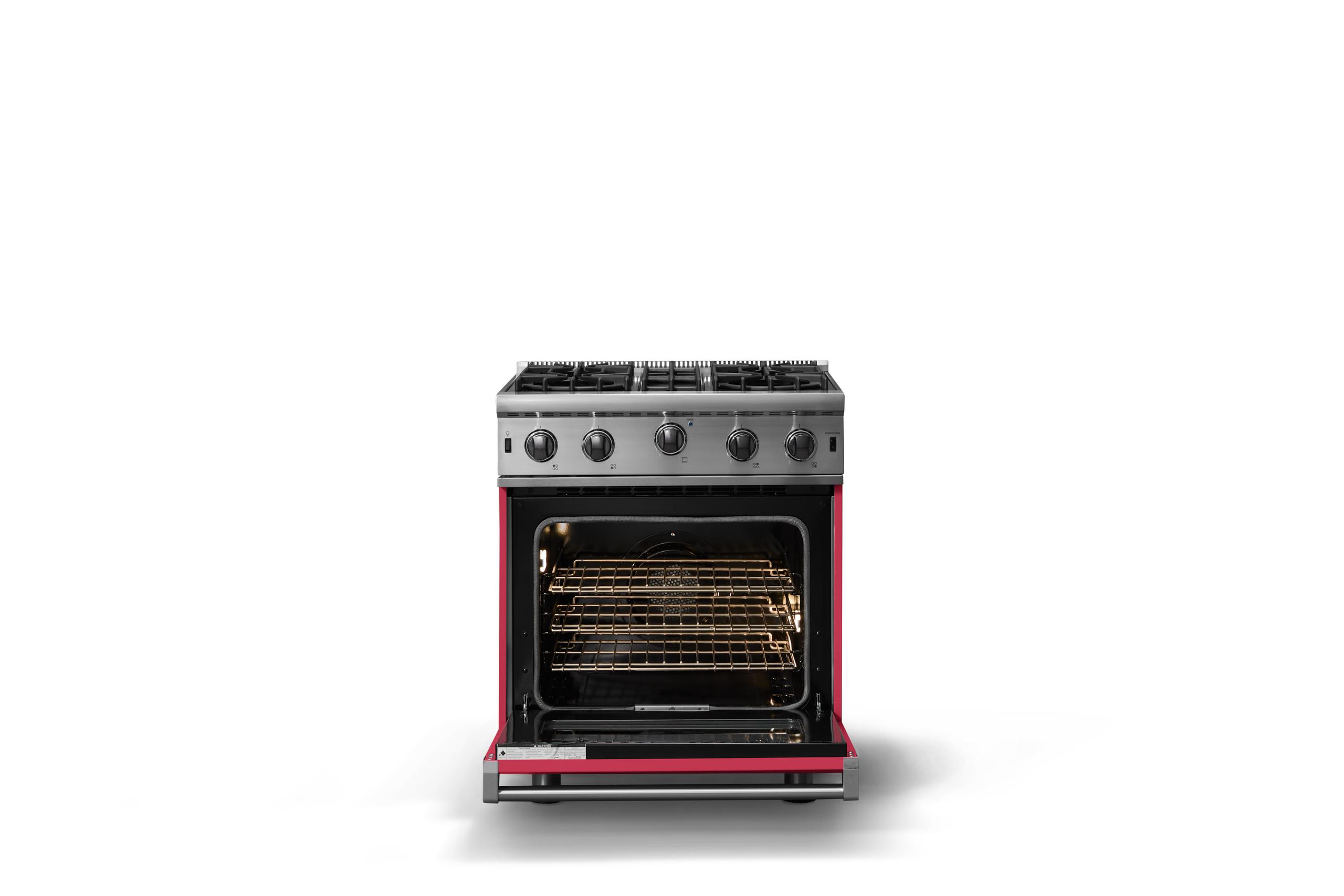 30"W. Open Burner Gas Range {Finish=Valentine, Trim=Polished Chrome, Fuel=Natural Gas}