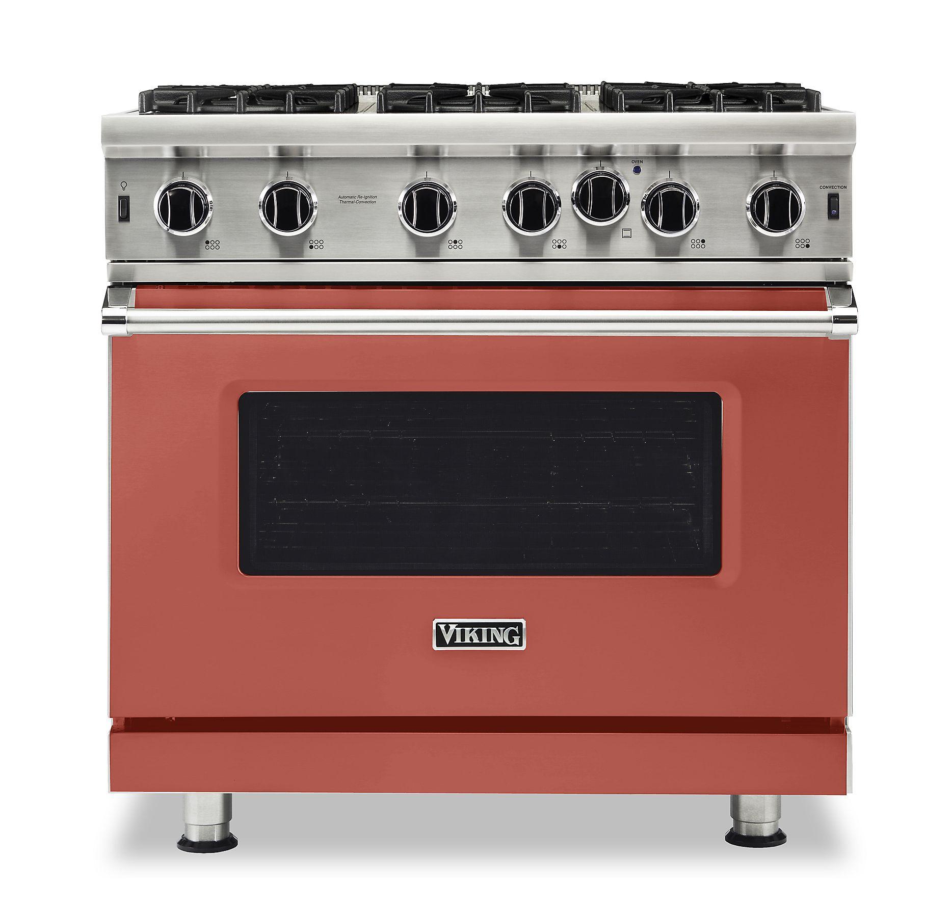 • Heavy-duty, porcelainized, cast-iron removable surface grates provide continuous front-to-rear, left-to-right surface for easy movement of large pots