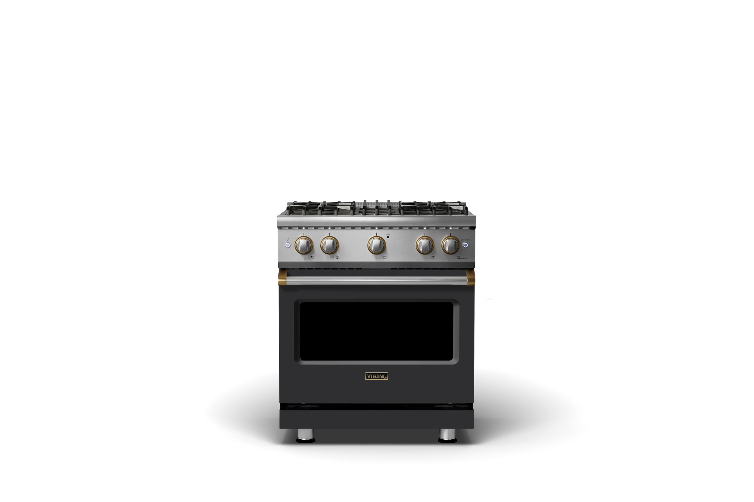 30"W. Sealed Burner Gas Range {Finish=Cast Black, Trim=Brushed Brass, Fuel=Natural Gas}