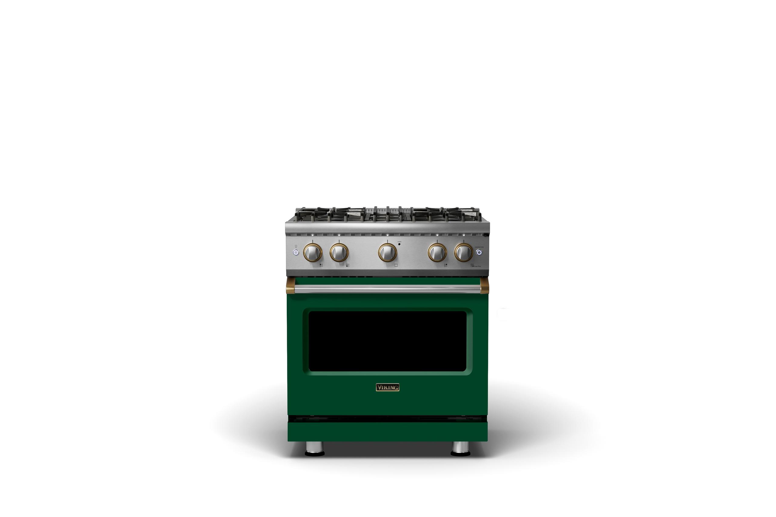 30"W. Sealed Burner Gas Range {Finish=Ivy, Trim=Brushed Brass, Fuel=Natural Gas}