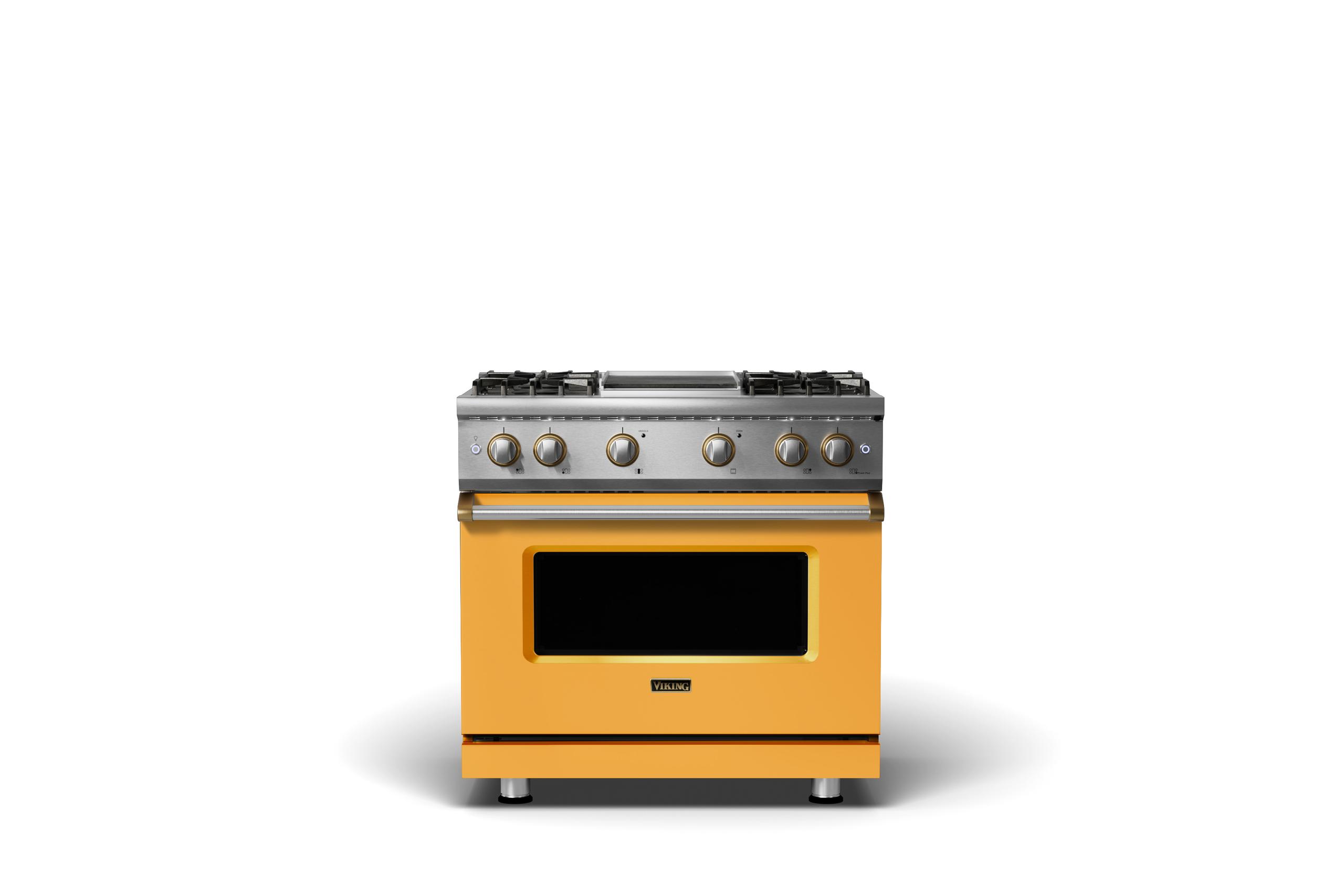 36"W. Sealed Burner Gas Range {Burner=4g, Finish=Daffodil, Trim=Brushed Brass, Fuel=Natural Gas}