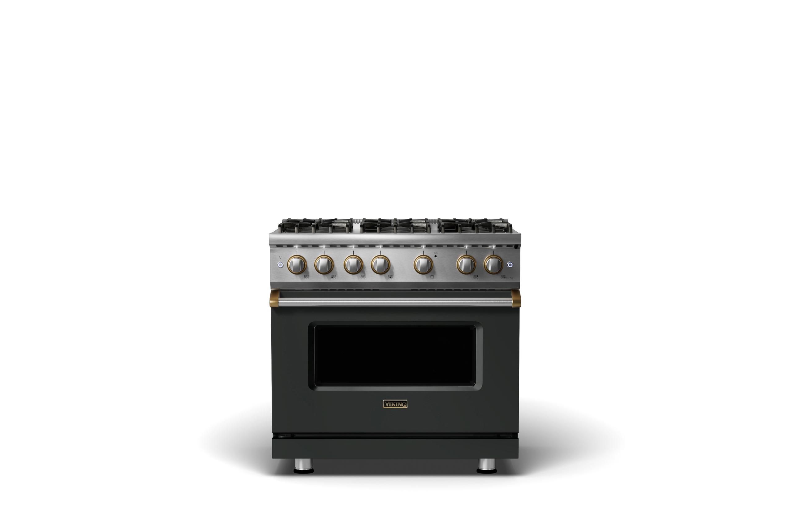 36"W. Sealed Burner Gas Range {Burner=6b, Finish=Antique Bronze, Trim=Brushed Brass, Fuel=Natural Gas}