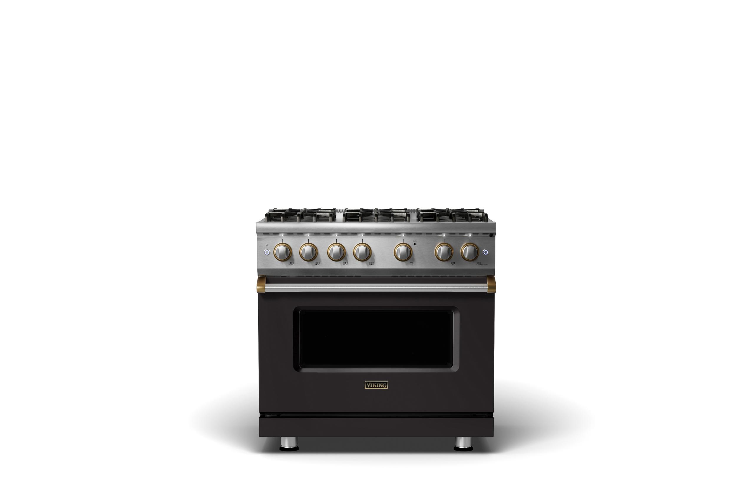 36"W. Sealed Burner Gas Range {Burner=6b, Finish=Onyx, Trim=Brushed Brass, Fuel=Natural Gas}