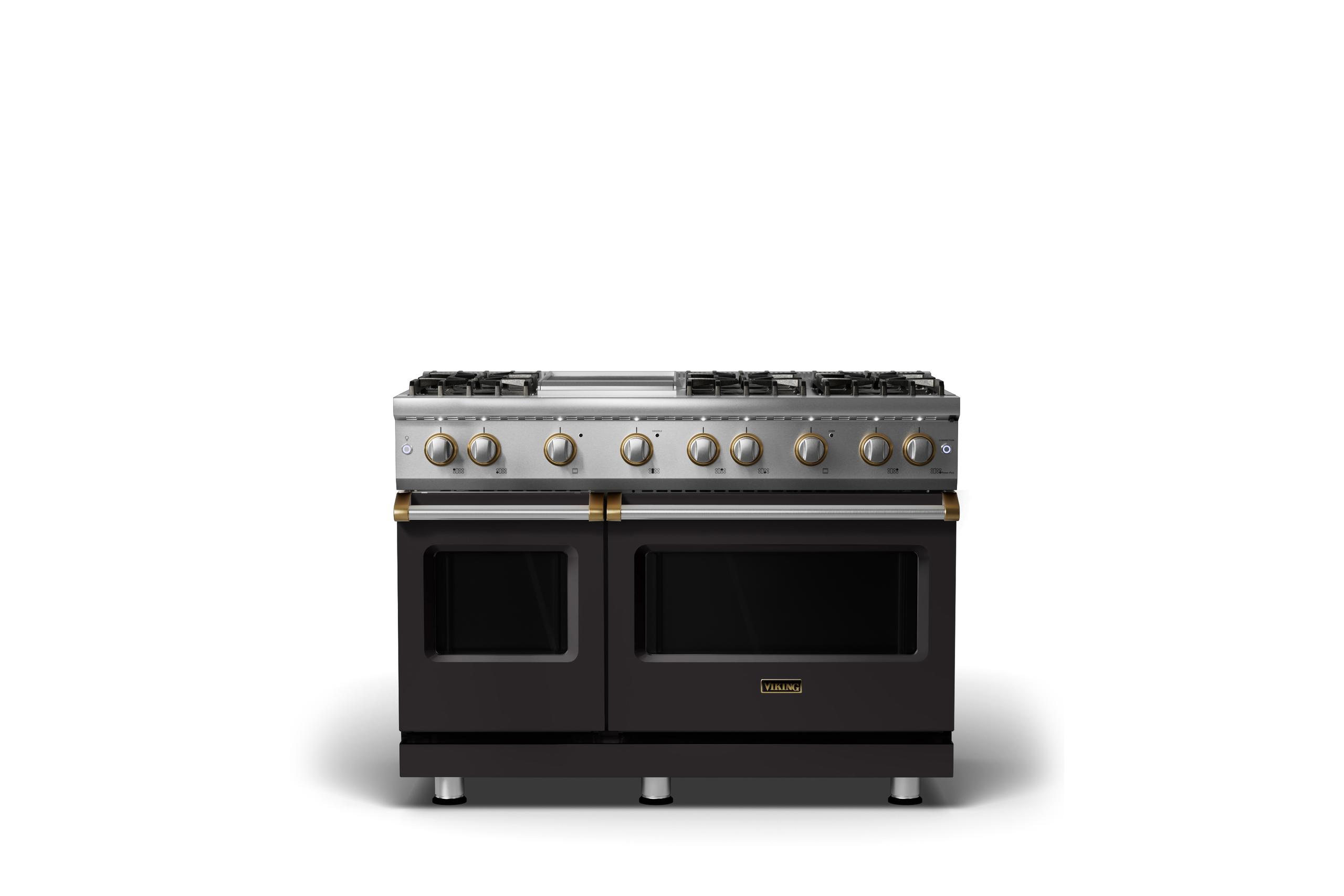 48"W. Sealed Burner Gas Range {Burner=6g, Finish=Onyx, Trim=Brushed Brass, Fuel=Natural Gas}
