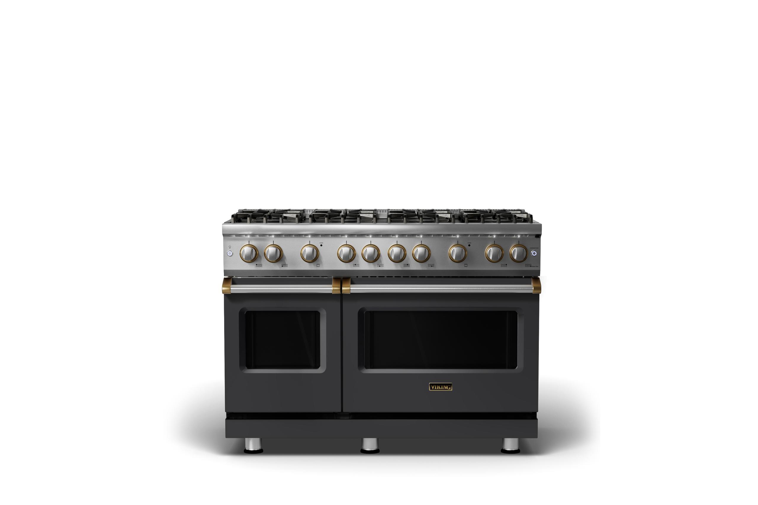 48"W. Sealed Burner Gas Range {Burner=8b, Finish=Cast Black, Trim=Brushed Brass, Fuel=Natural Gas}