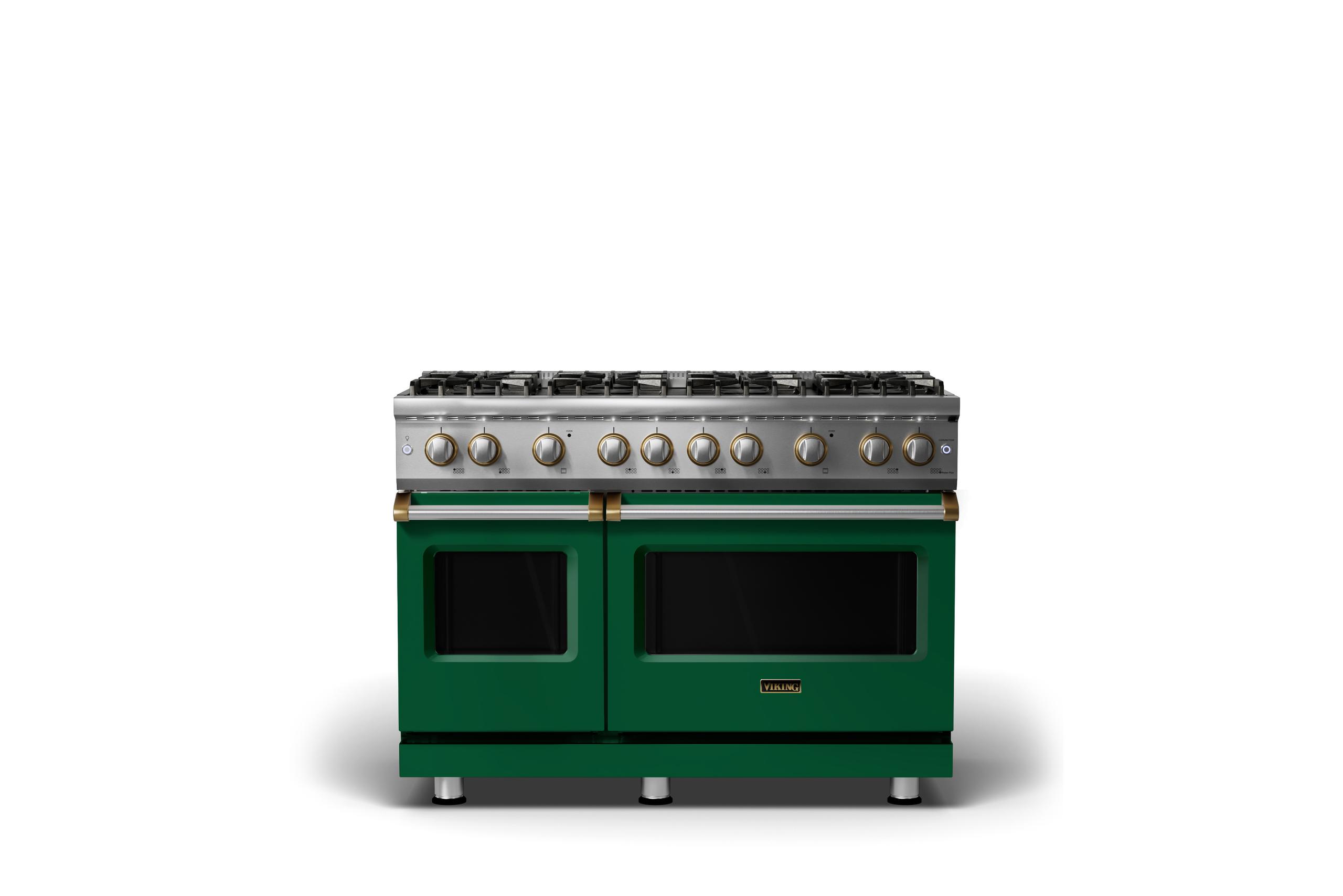 48"W. Sealed Burner Gas Range {Burner=8b, Finish=Ivy, Trim=Brushed Brass, Fuel=Natural Gas}