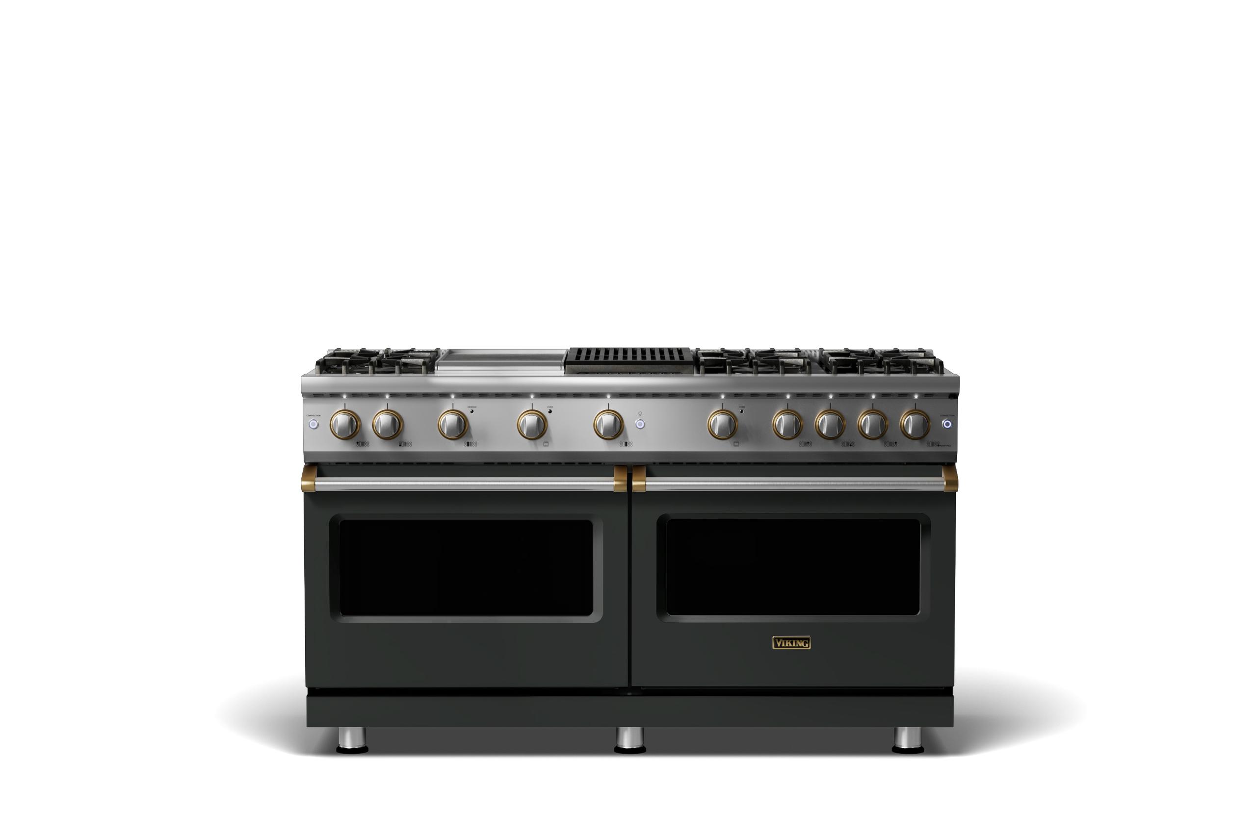 60"W. Sealed Burner Gas Range {Finish=Antique Bronze, Trim=Brushed Brass, Fuel=Natural Gas}