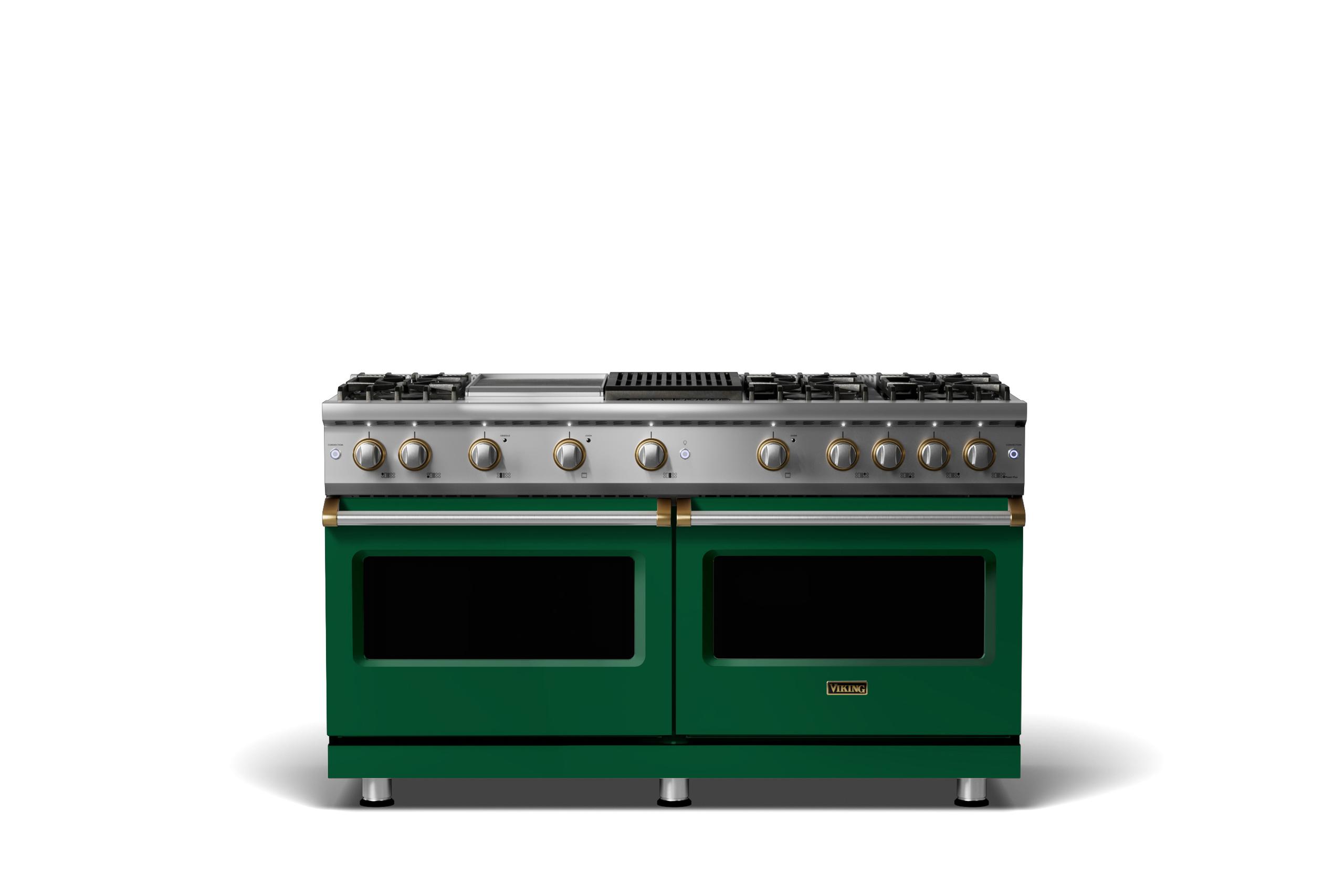 60"W. Sealed Burner Gas Range {Finish=Ivy, Trim=Brushed Brass, Fuel=Natural Gas}