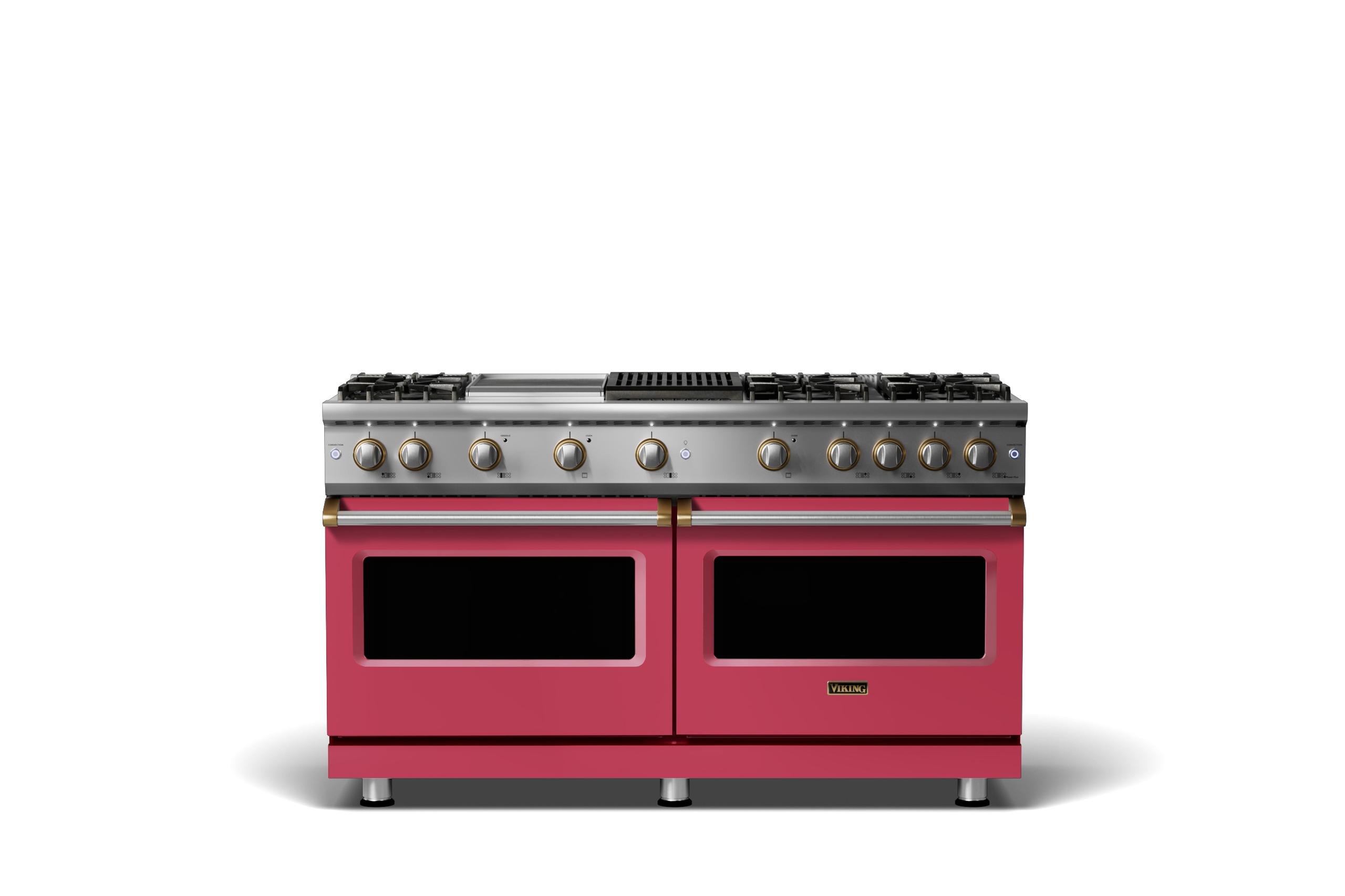 60"W. Sealed Burner Gas Range {Finish=Valentine, Trim=Brushed Brass, Fuel=Propane}