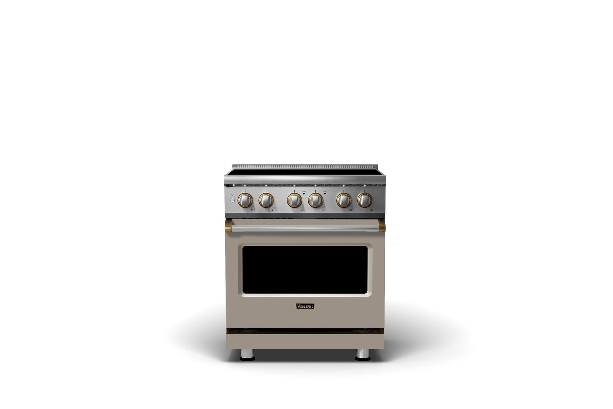 30"W. Induction Range {Finish=Nantucket, Trim=Brushed Brass}