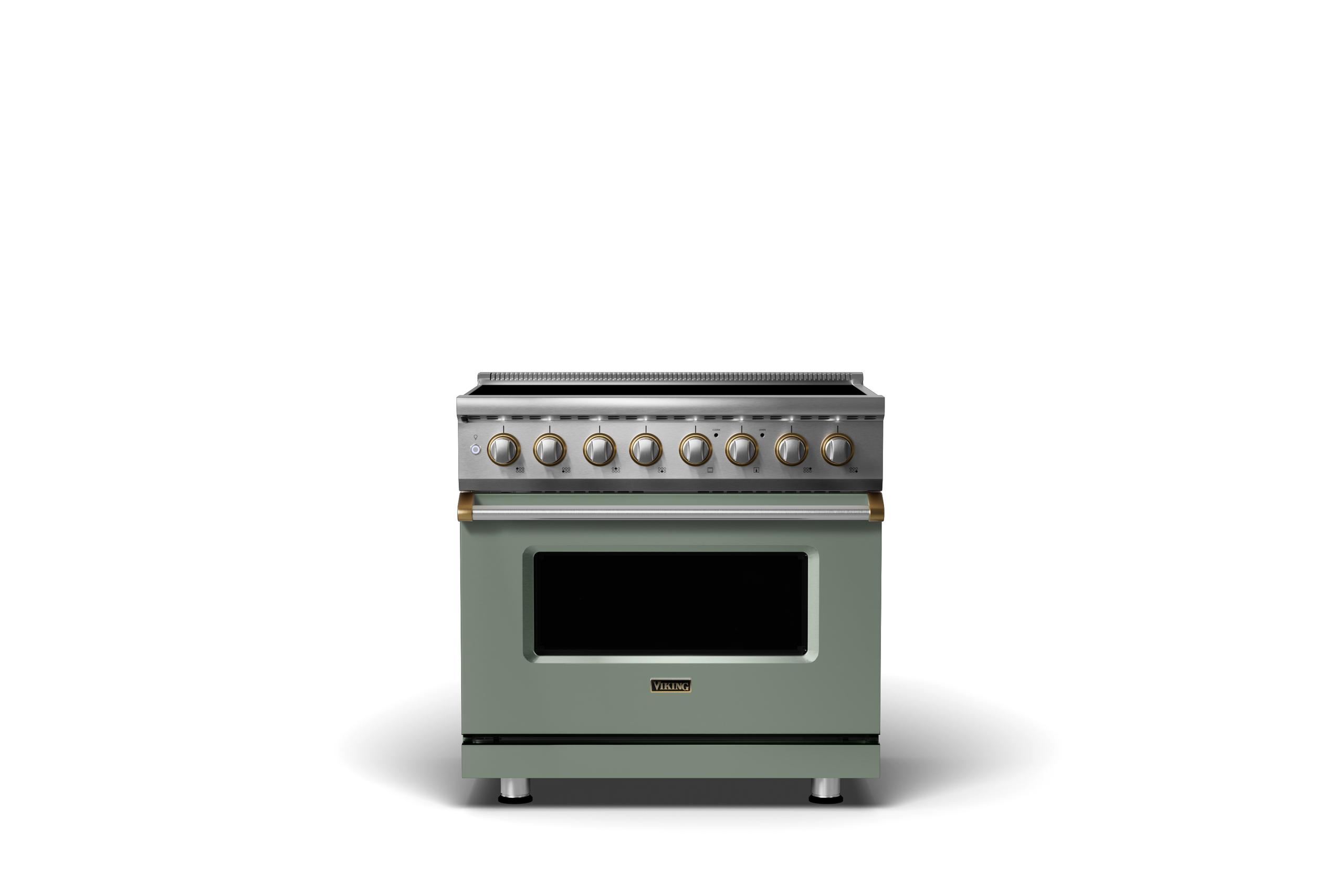 36"W. Induction Range {Finish=Eucalyptus, Trim=Brushed Brass}