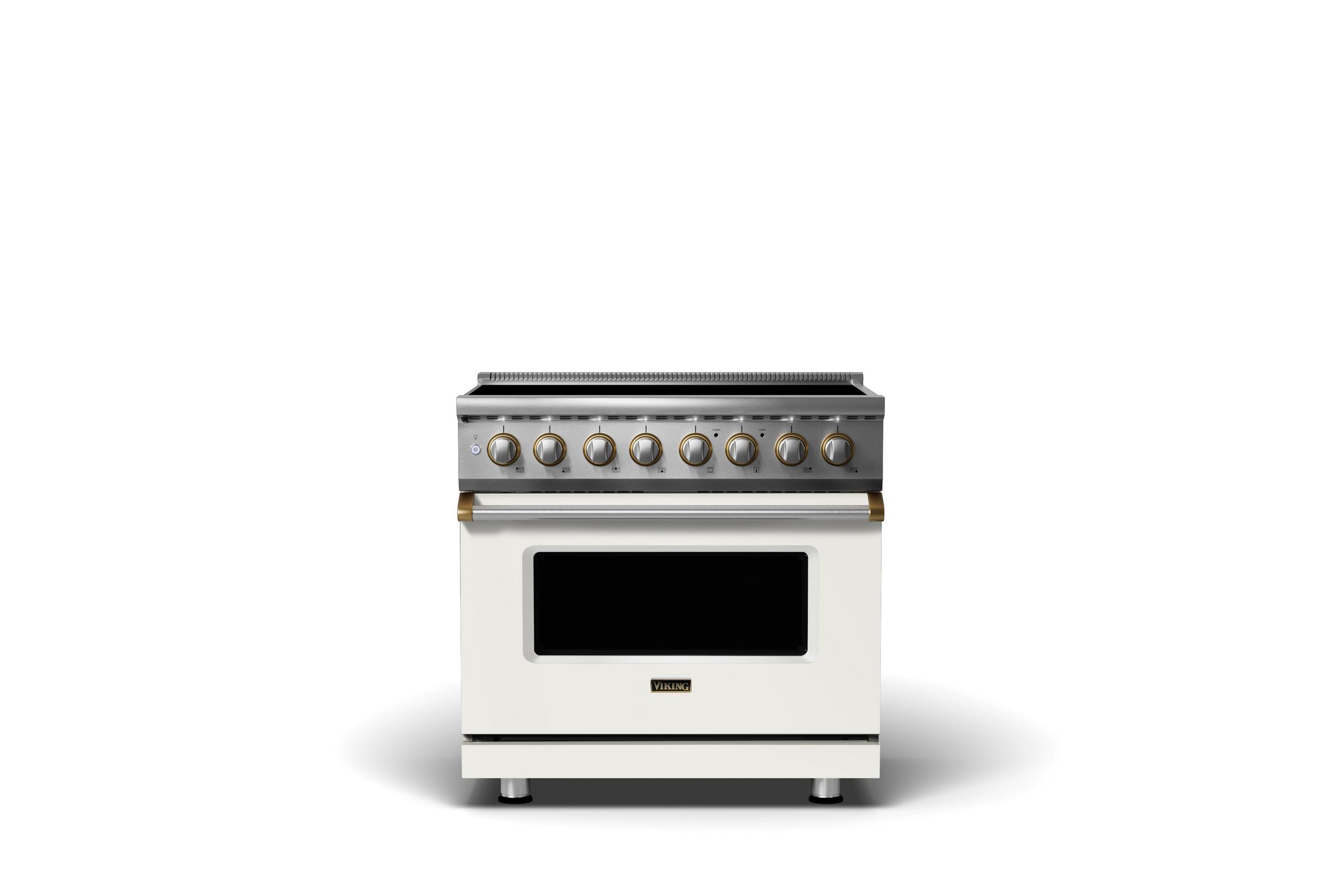 36"W. Induction Range {Finish=Pure White, Trim=Brushed Brass}