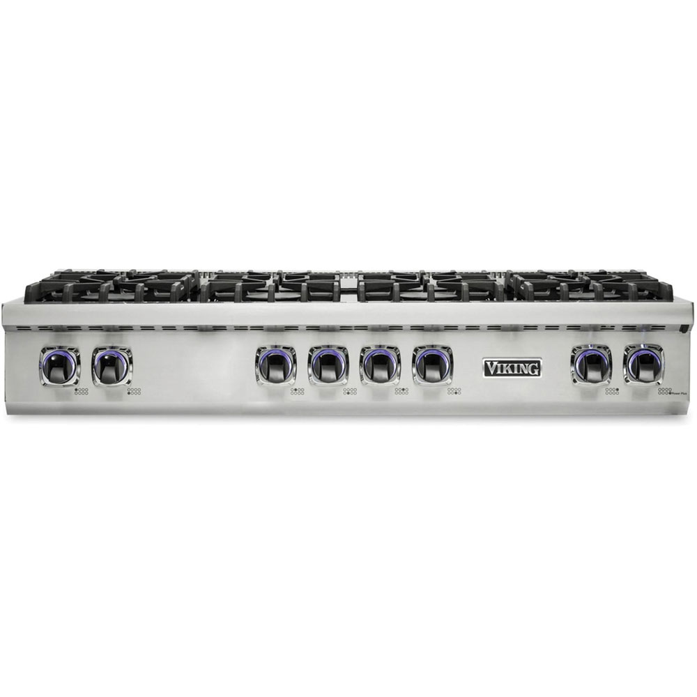 EXCLUSIVE Viking Elevation Burners with brass flame ports boast 23,000 BTUs across the front of all width configurations, with multiple 15,000 BTUs and one 8,000 BTU burner across the rear