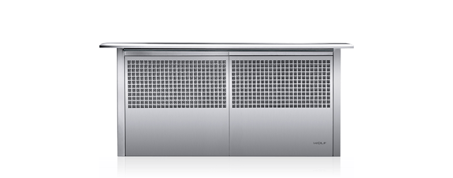 Quickly remove food odors and smoke with the "hidden" Wolf cooktop downdraft that rises 14 inches from the countertop to operate when in use.