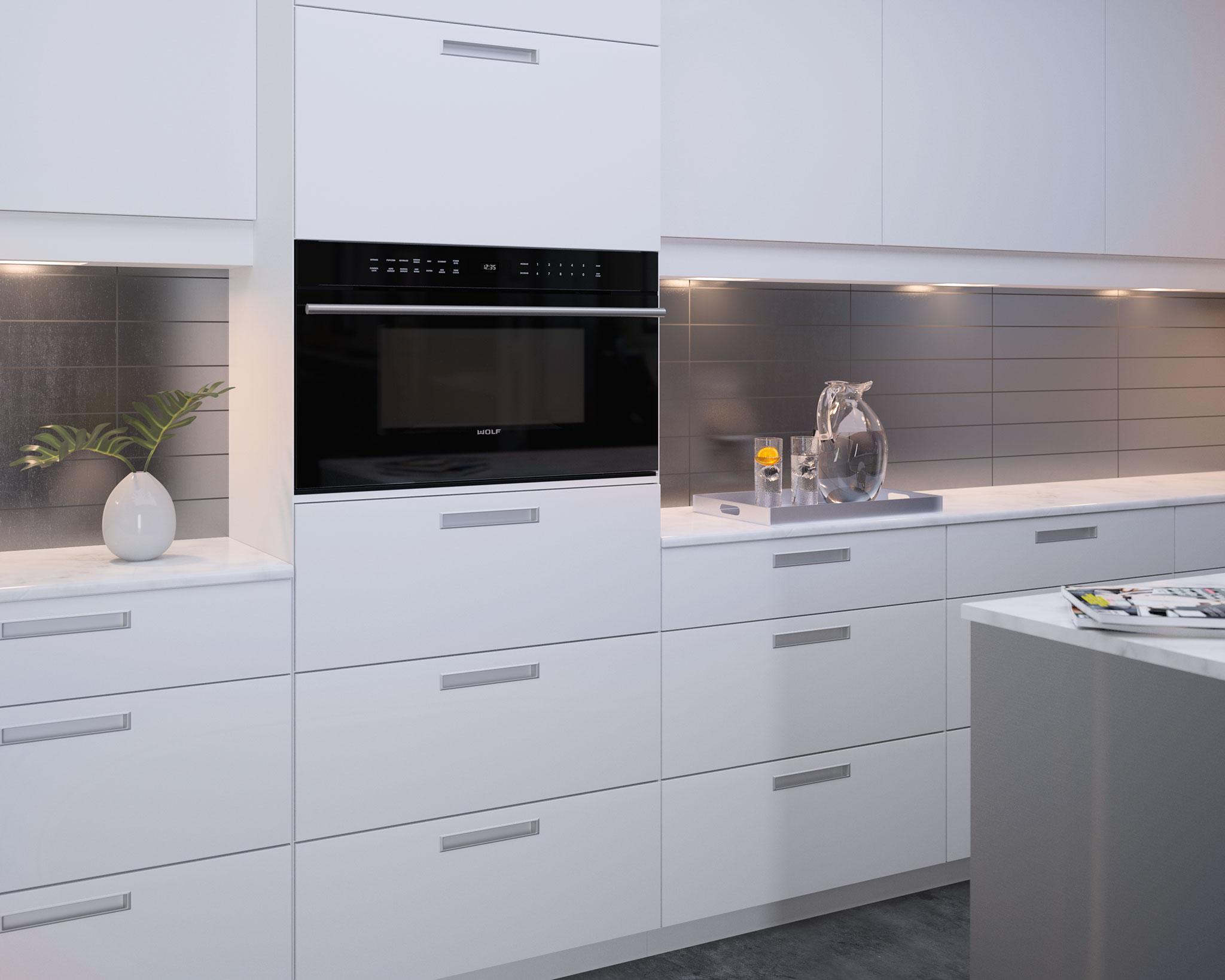 Install into surrounding cabinetry to coordinate with other Wolf built-in ovens and warming drawers